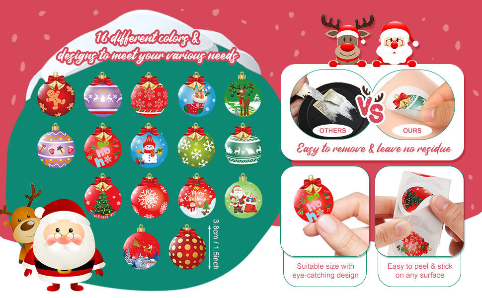 800 Pieces Christmas Stickers Roll 16 Designs Cards Envelope Stickers for Christmas Party Classroom Decor Holiday Crafts Supplies