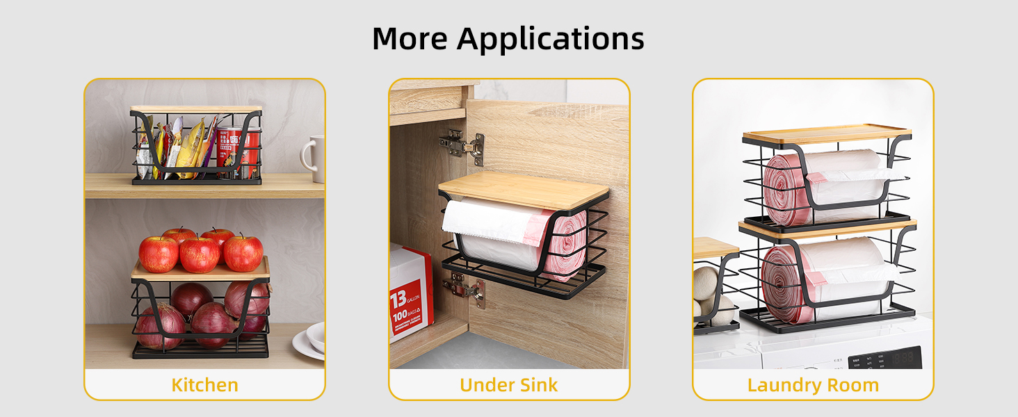 Using it as a glove organizer will help you maximize counter and drawer space. Gloves can be placed where they're needed, making them easier to access. It can also be used to store small towels, paper towels, ziplock bags, trash bags, baby wipes, and more. Or, use it on your kitchen island to store fruits, vegetables, snacks, and more.