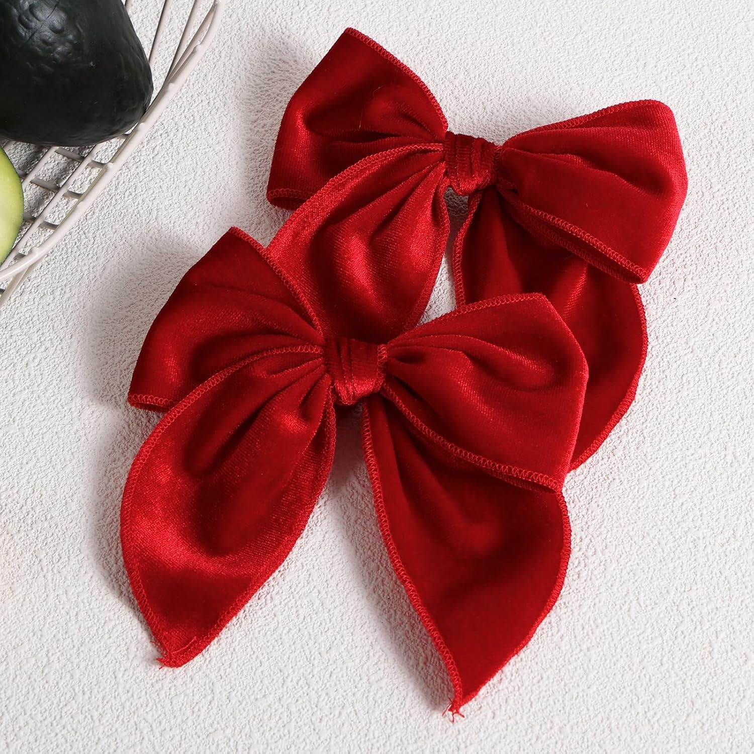 5" Red Christmas Velvet Fable Hair Bows Kids Big Velvet Ribbon Sailor Bow Alligator Clip Cheer Barrettes Hairpins Valentines New Year Gift Accessory for Toddler Teen Baby Girls