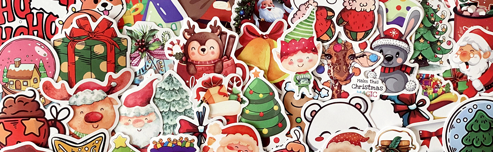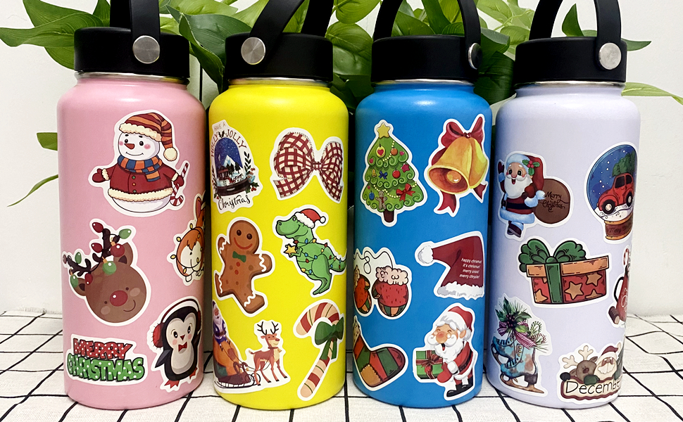 AOWDIAO great value christmas themed sticker pack, These christmas stickers can be applied to any smooth and flat surface, Perfect for decorating your water bottle, laptop, phone case , car, etc..