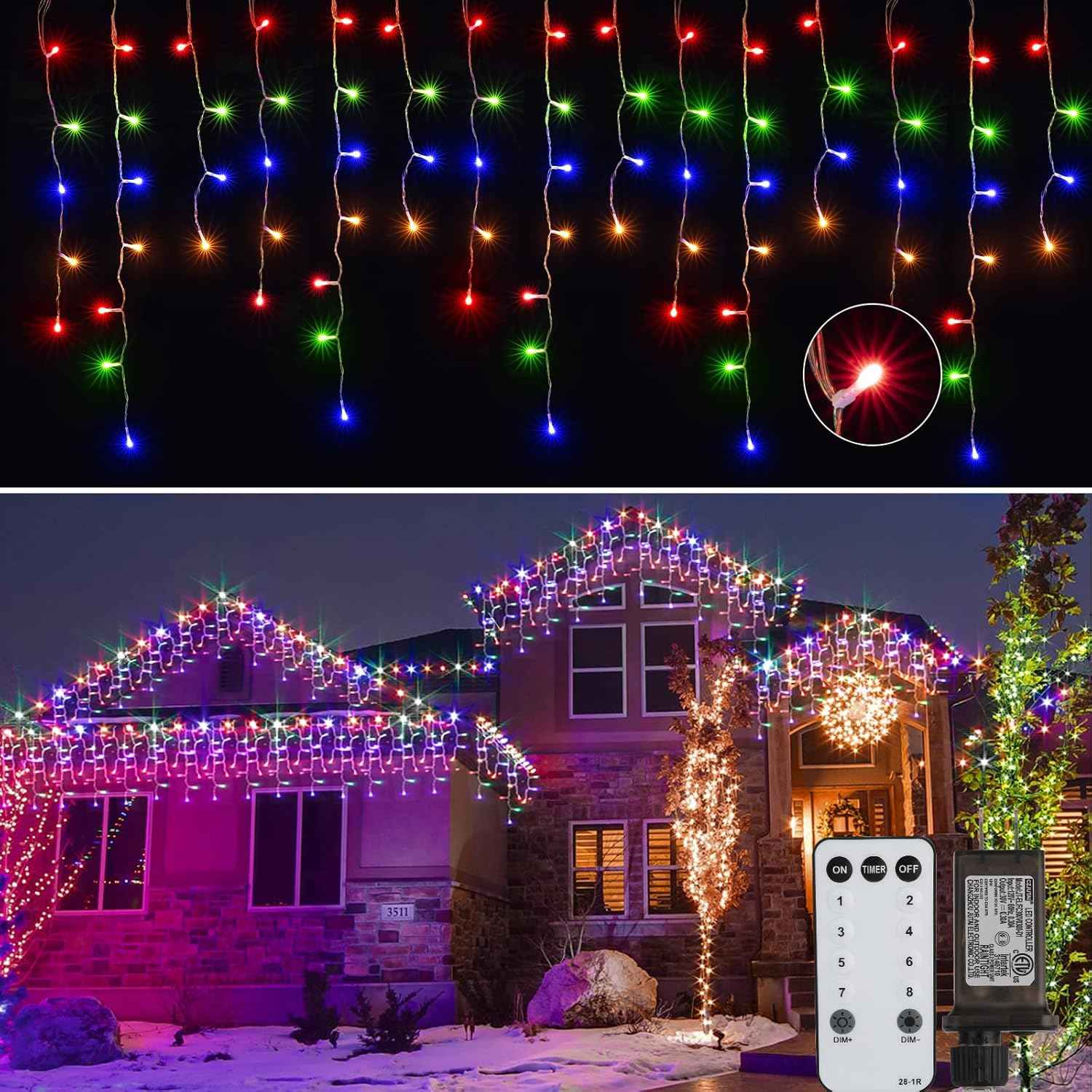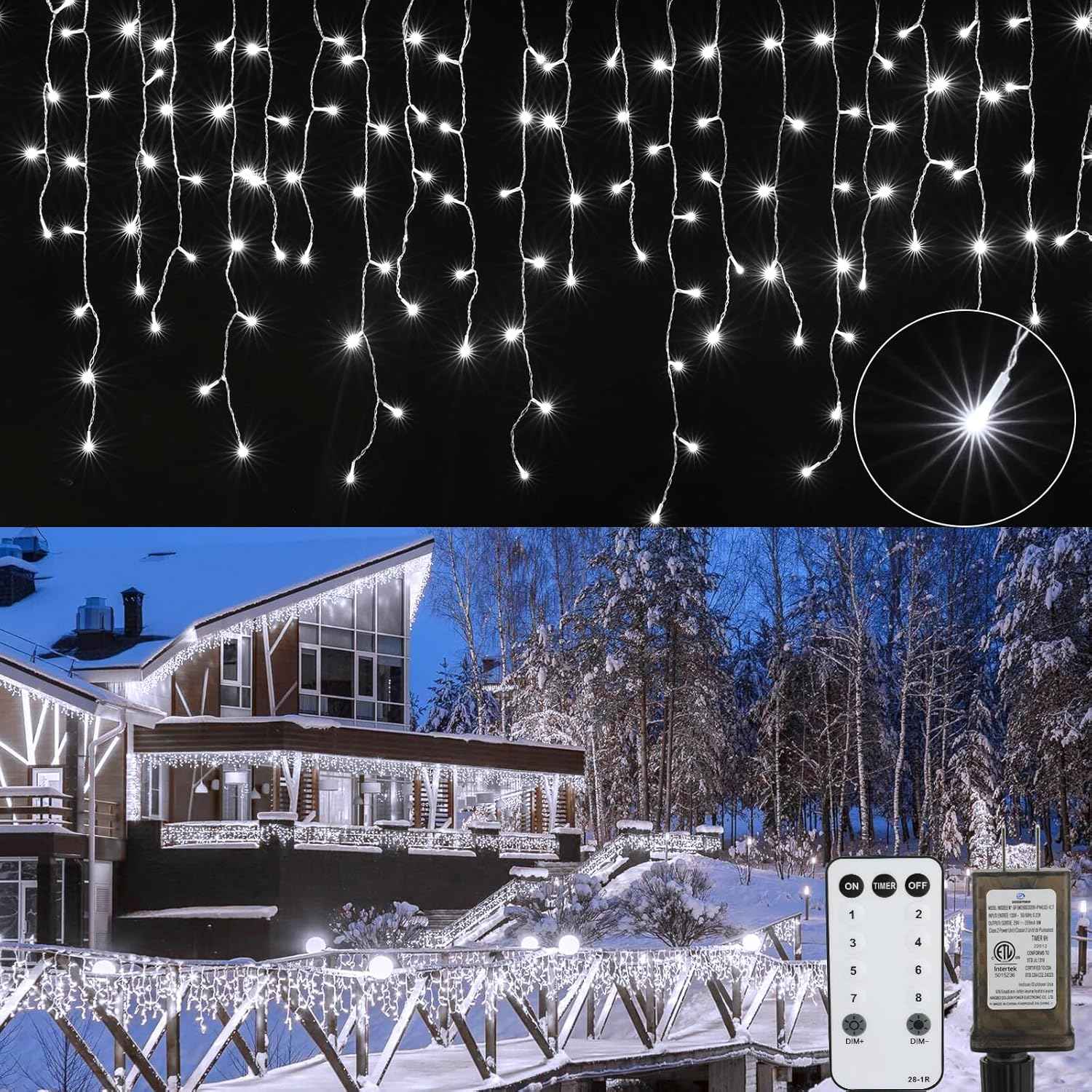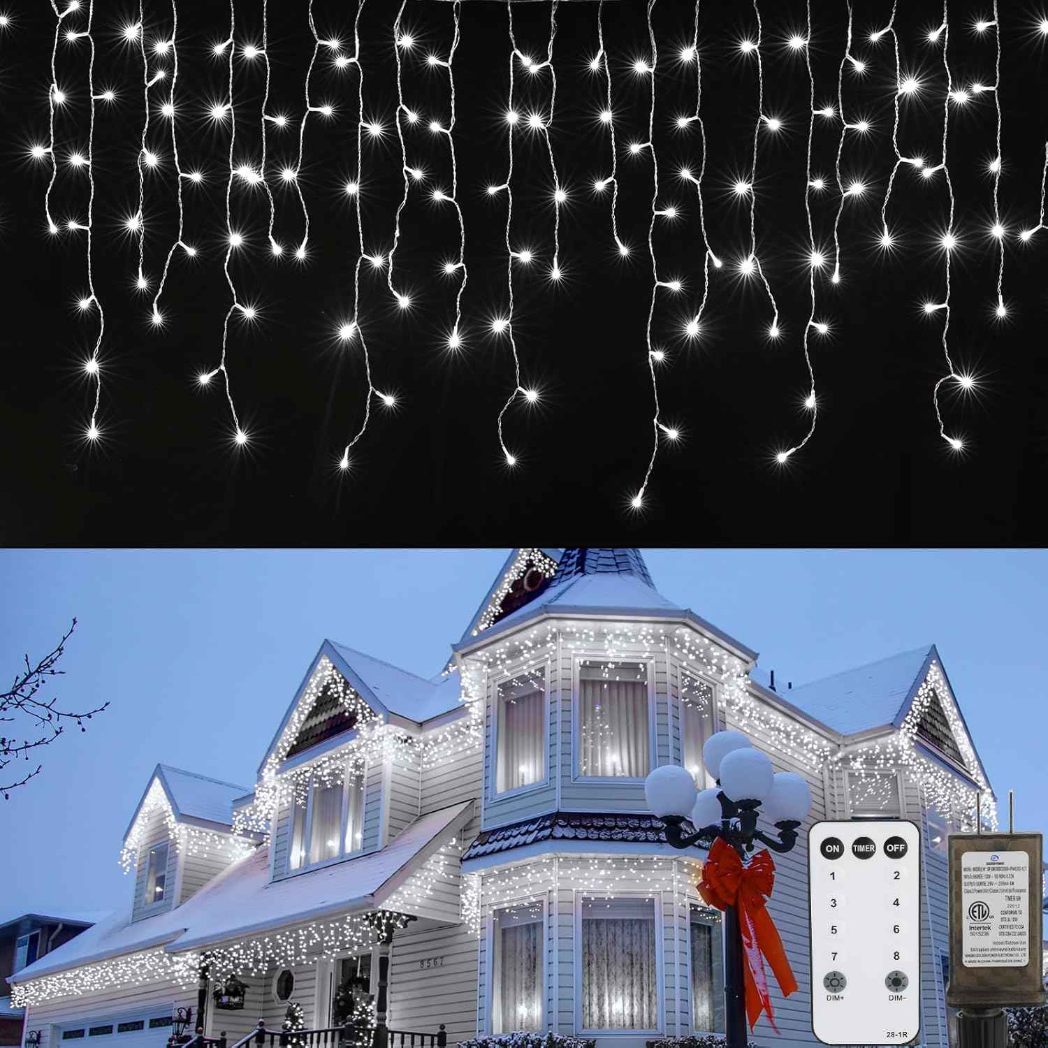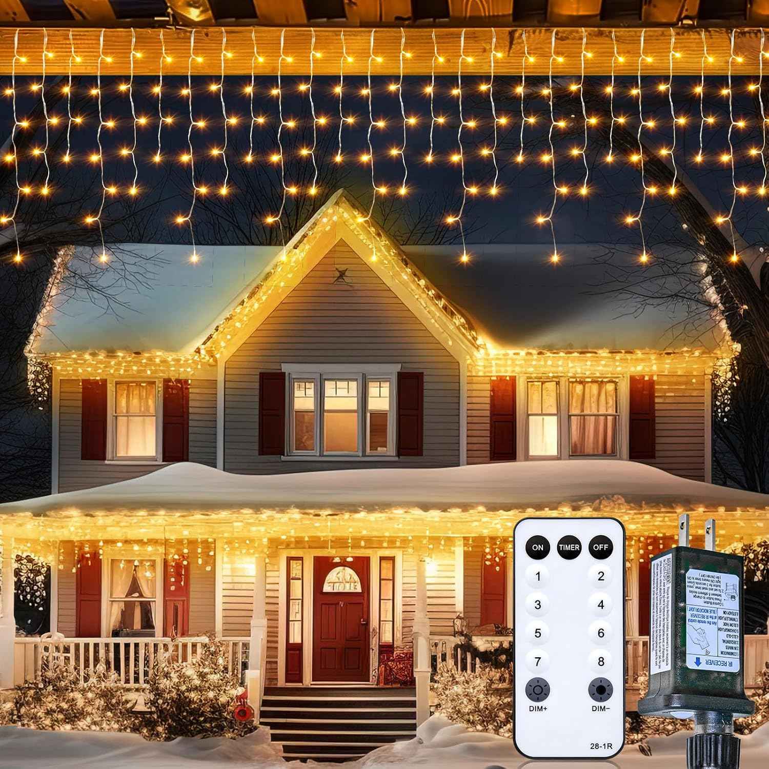Brightown 40FT Warm White Icicle Christmas Lights, 432 LED Outdoor Waterproof String Lights with 81 Drops, 8 Modes, Timer, Connectable, Remote Included