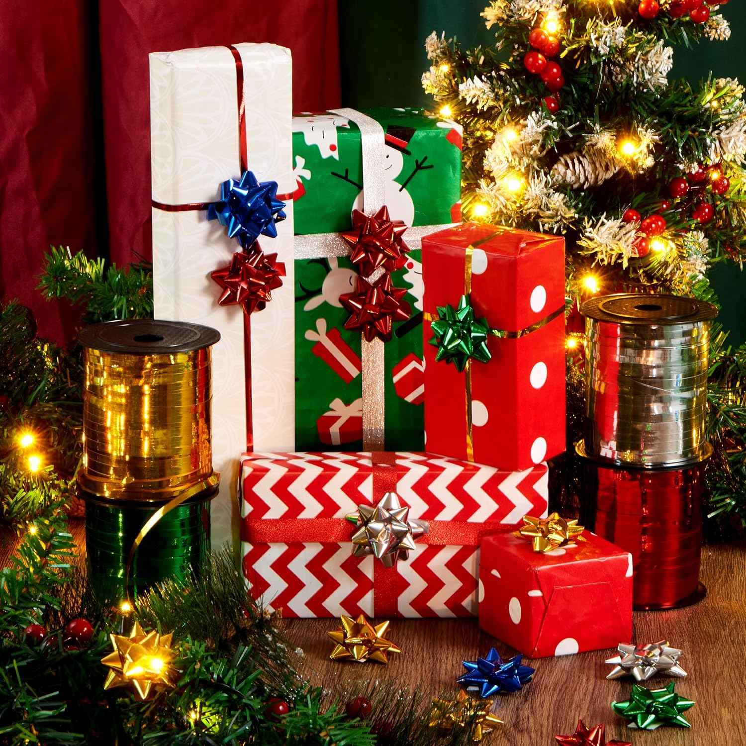 - JOYIN Christmas 34 Pcs Bows and Ribbons Set, 4 Rolls of Curling Ribbons with 30 Pcs Bows, Gift Wrapping DIY for Holiday Crafts Decoration