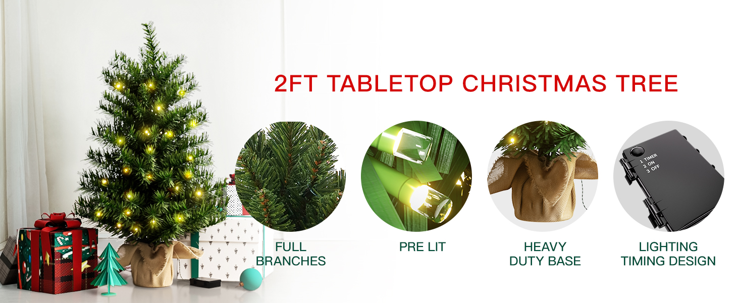 2ft Tabletop Christmas Tree with LED Lights are Perfect for Gifts!