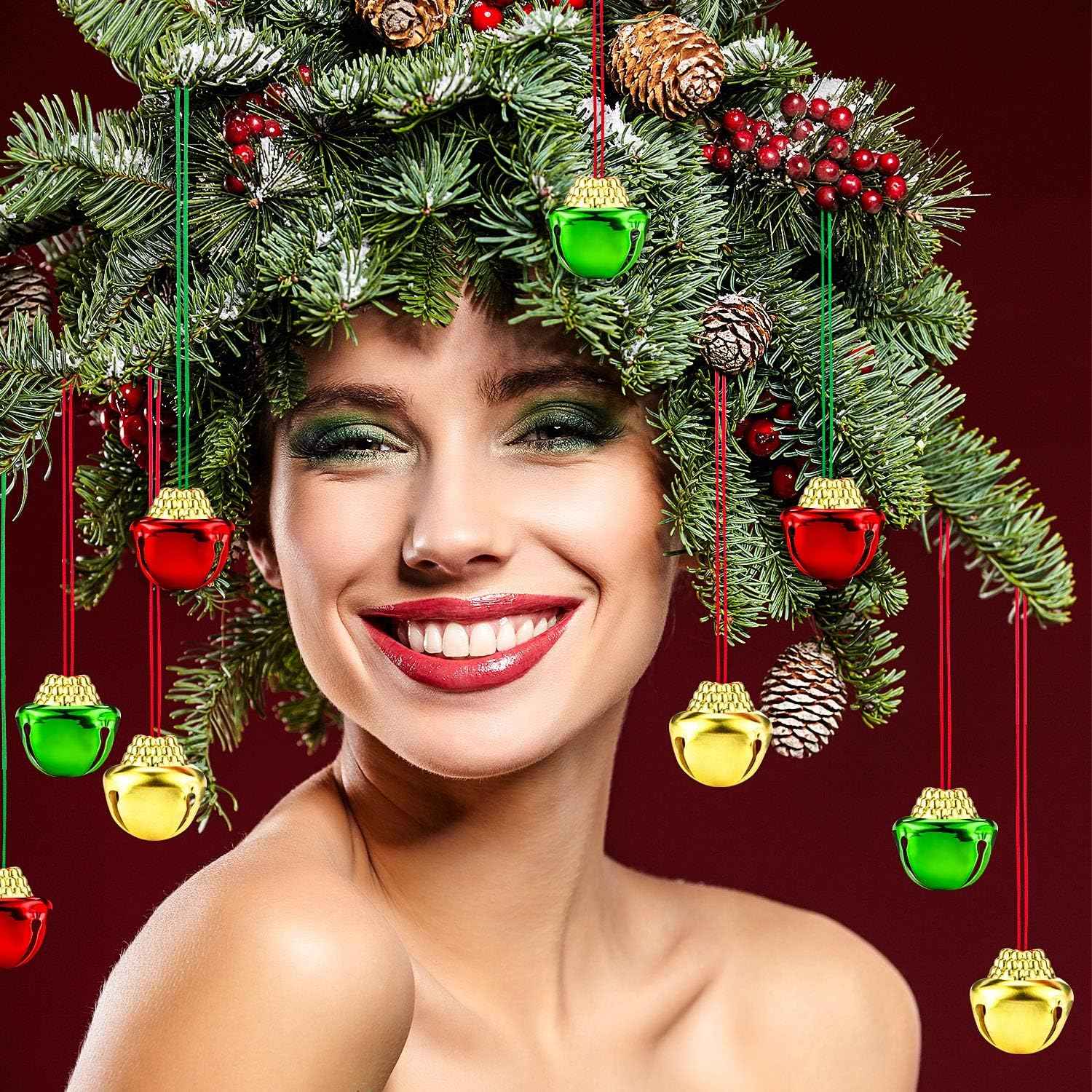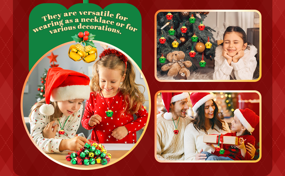 - Sumind Christmas Bell Necklaces Christmas Holiday Gold Green Red Xmas Jingle Necklaces Bell with Ribbons for Craft Gift Supplies Stocking Stuffers Accessories (72 Pieces)