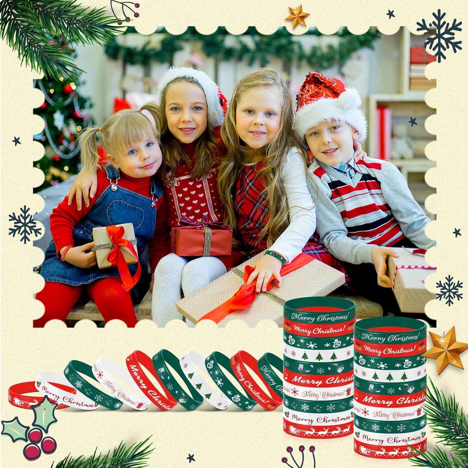 - Syhood 200 Pieces Christmas Silicone Bracelets Rubber Wristbands Bulk Merry Christmas Bracelets Gifts for Kids Adult Xmas Party Favors Stocking Stuffers, 10 Style (Red, Dark Green, White)