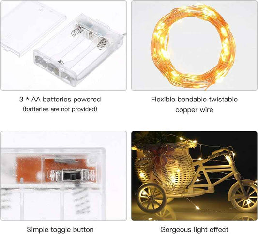 Led Fairy Lights Battery Operated, 1 Pack Mini Battery Powered Copper Wire Starry Fairy Lights for Bedroom, Christmas, Parties, Wedding, Centerpiece, Decoration (5m/16ft Warm White)