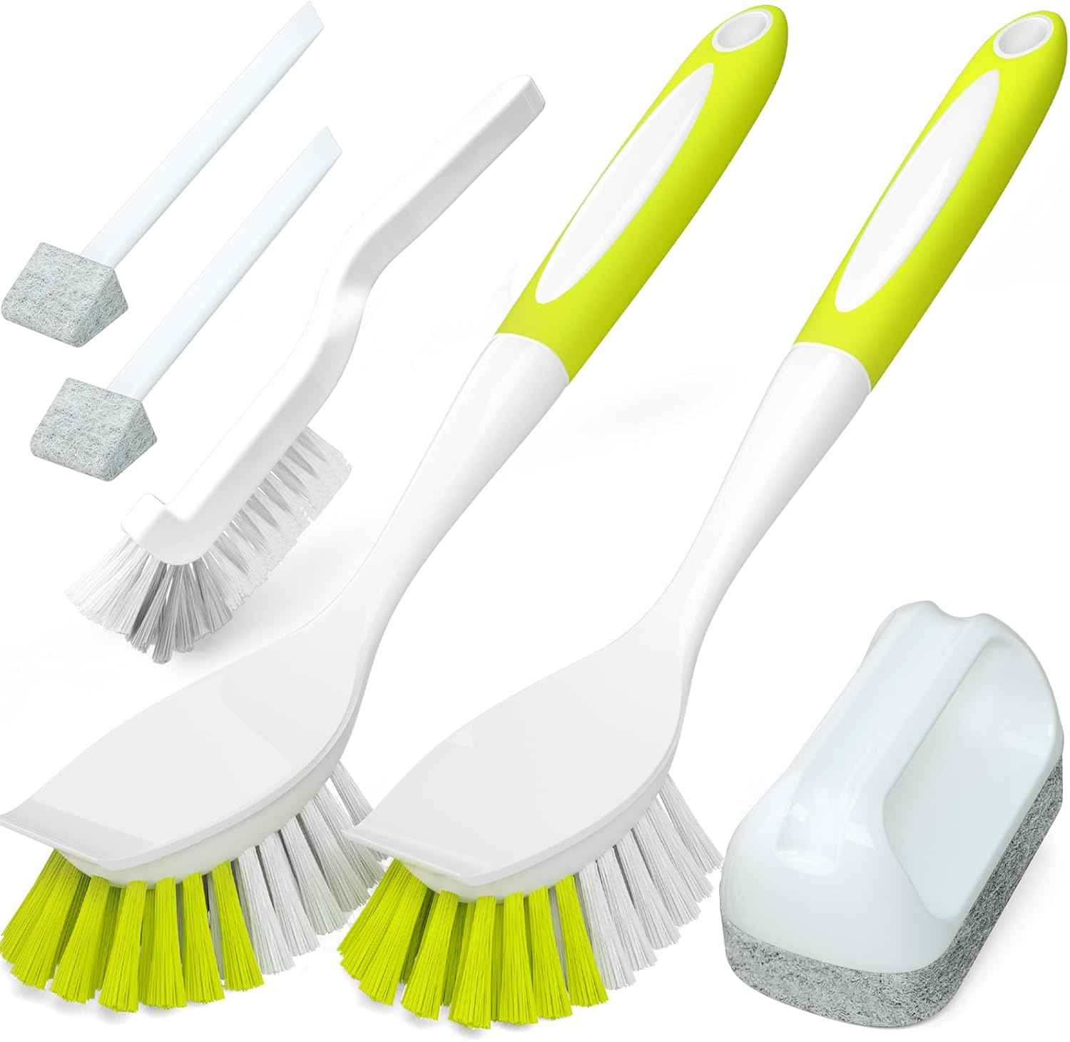 - Holikme 6-Pack Kitchen Cleaning Brush Set – Multi-Purpose Scrub Brushes for Dishes, Sink, Tiles & Countertops – Durable Green Set