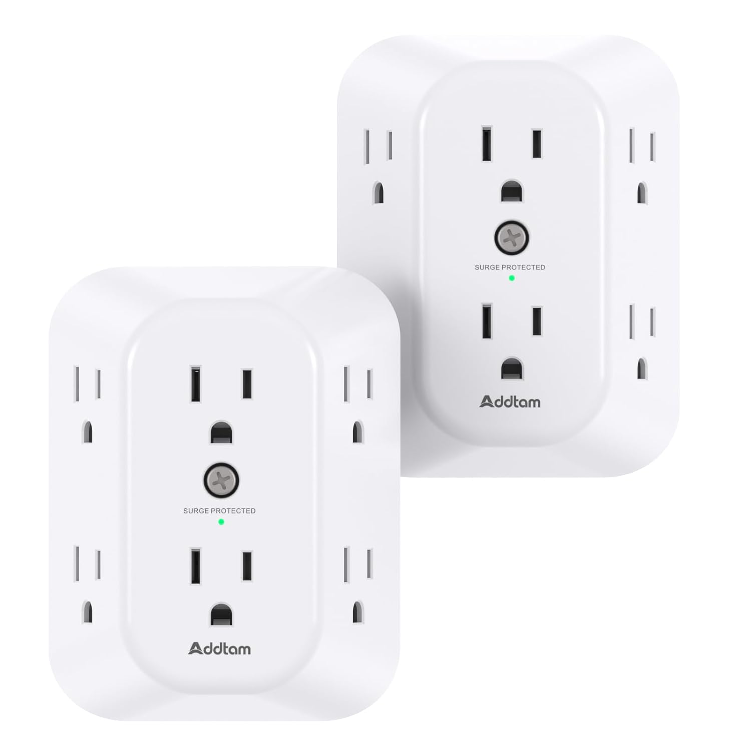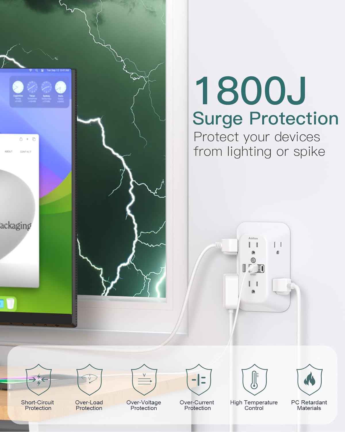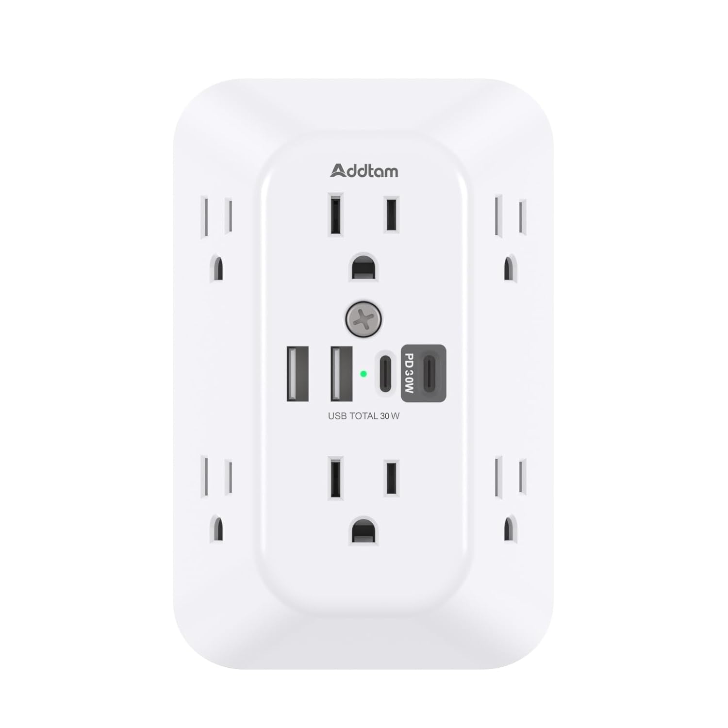 Addtam Surge Protector Outlet Extender, 6-Outlet Splitter with 4 USB Wall Charger(2 USB-C Ports), Multi Plug Wall Outlet 1800J Power Strip for Home Office Dorm Room Essentials