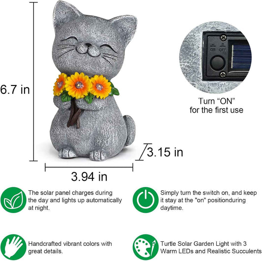 Solar Garden Statues Cat with Daisy and LED Lights Birthday Gifts for Women Mom Grandma Solar Outdoor Cat Decor for Outside,Outdoor Solar Lights for Yard, Garden and Patio, Unique Gift for Women