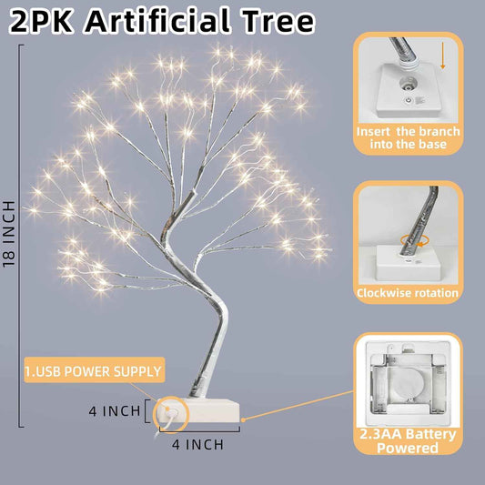 PEIDUO Fairy Lights Spirit Tree, 2PK Bonsai Tree Light, 108 LED Warm White Fairy Light Trees for Room Decor, Artificial Tree with 9 Modes for Christmas Decorations Indoor Home Decor