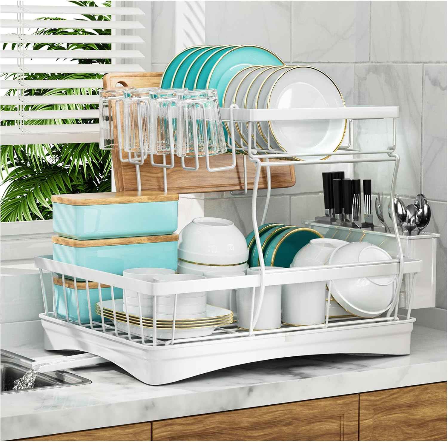 This drying rack for kitchen counter take a detachable 2-tier design.The detachable top tier of the dish rack allow you to use it easily.