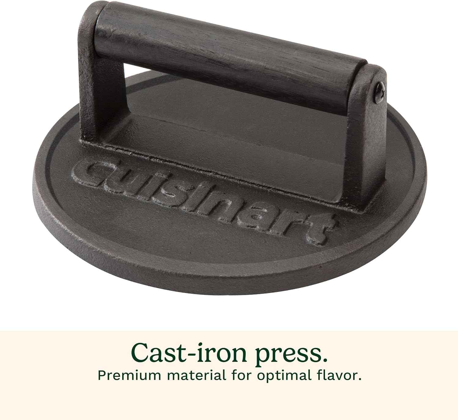 - Cuisinart 6.5" Cast Iron Smashed Burger Press, Round Flat Edge Grill Press for Crispy Smash Burgers, Burger Tool for Grill and Griddle Accessories, for BBQs and Tailgates