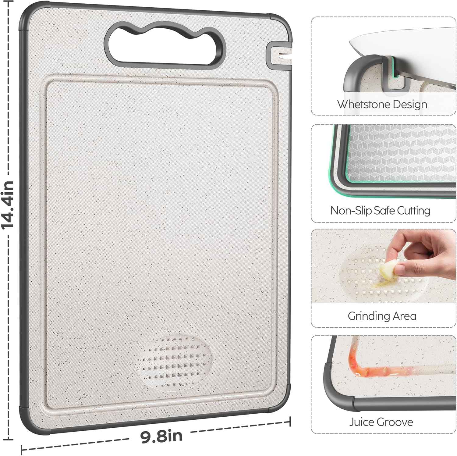 Double Sided 304 Stainless Steel & Wheat Straw Cutting Board, 14.4"*9.8" Non Toxic Chopping Board, Separately Handle Meat and Vegetables, Dishwasher Safe, Scratch Resistant Mesh Design