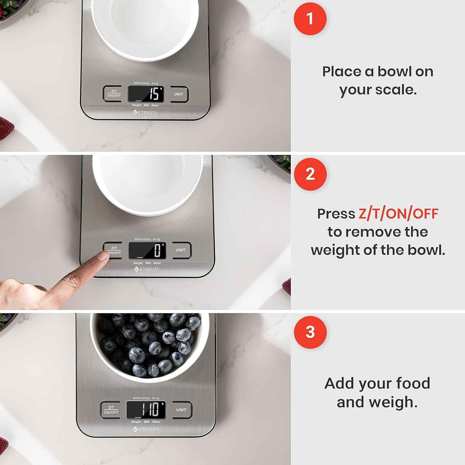You can easily choose among measurement in oz, lb:oz, g, ml (Milk & Water), fl'oz (Milk/Water). This digital scale measures in precise increments of 0.05oz (1 g) to accurately weigh your items. Power is provided by 2 AAA batteries (included), making the scale portable and ensuring that you can easily acquire replacement batteries.