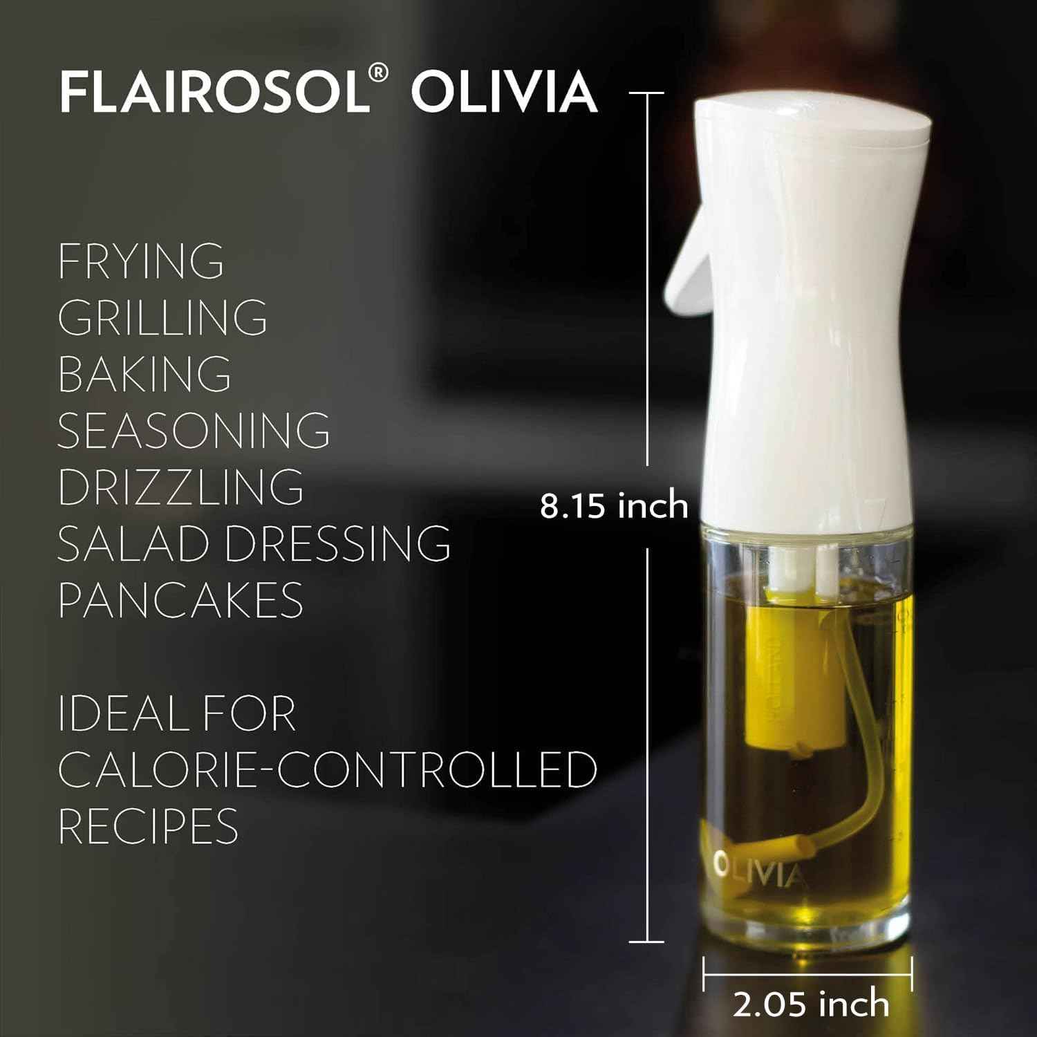 FLAIROSOL OLIVIA. The Original Advanced Oil Sprayer for Cooking, Salads, BBQs and More, Continuous Spray with Portion Control, Trusted by Chefs. Patented Technology. (Glass Bottle) (Golden Leaves)