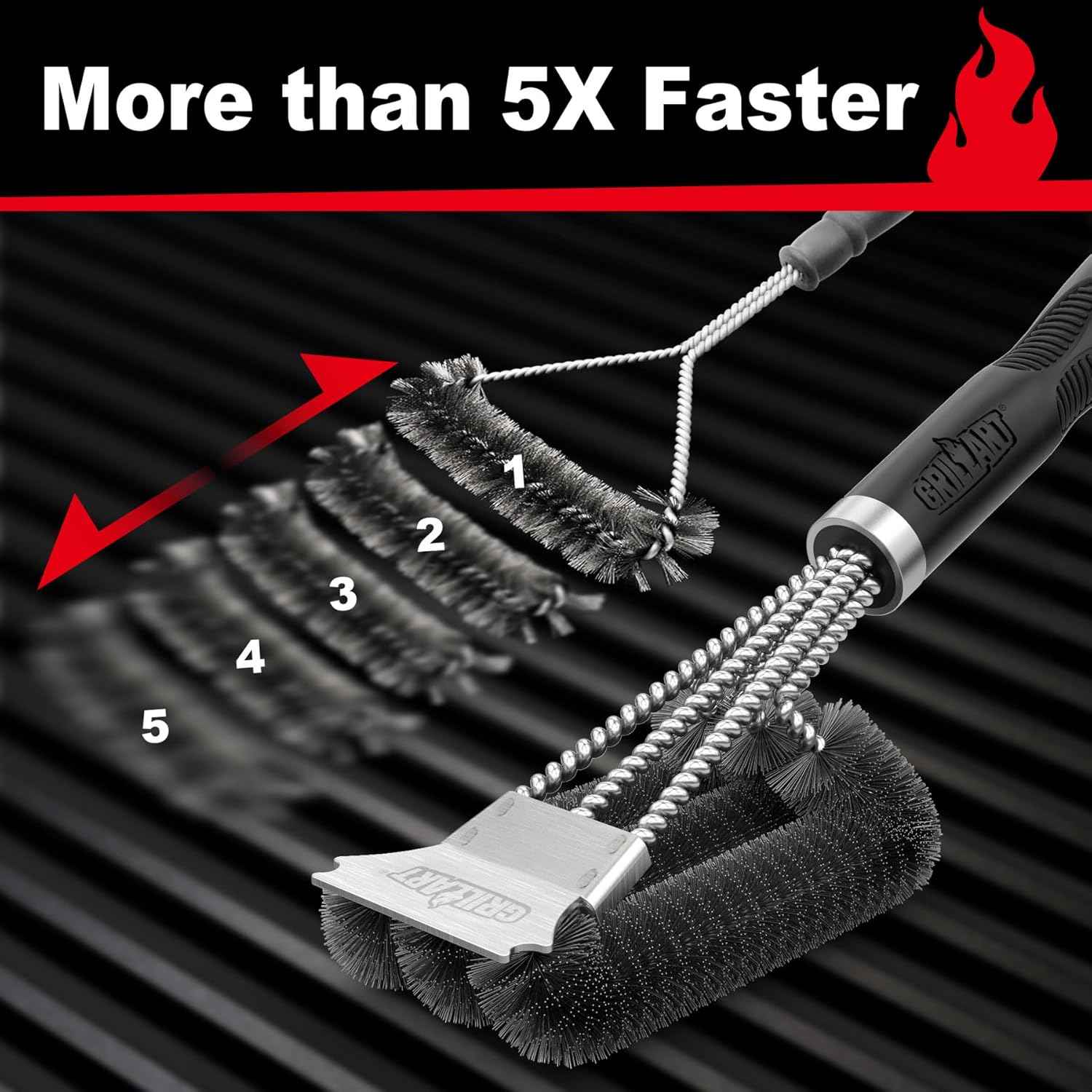 - GRILLART Grill Brush and Scraper, Extra Strong BBQ Cleaner Accessories, Safe Wire Bristles Barbecue Triple Scrubbers Cleaning Brush for Gas/Charcoal Grilling Grates, Wizard Tool BR-8115