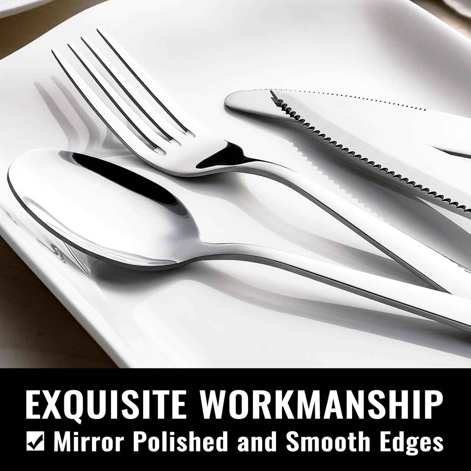 HIWARE 48-Piece Silverware Set with Steak Knives for 8, 18/8 Stainless Steel Flatware Cutlery Set For Home Kitchen Restaurant Hotel, Kitchen Utensils Set, Mirror Polished, Dishwasher Safe