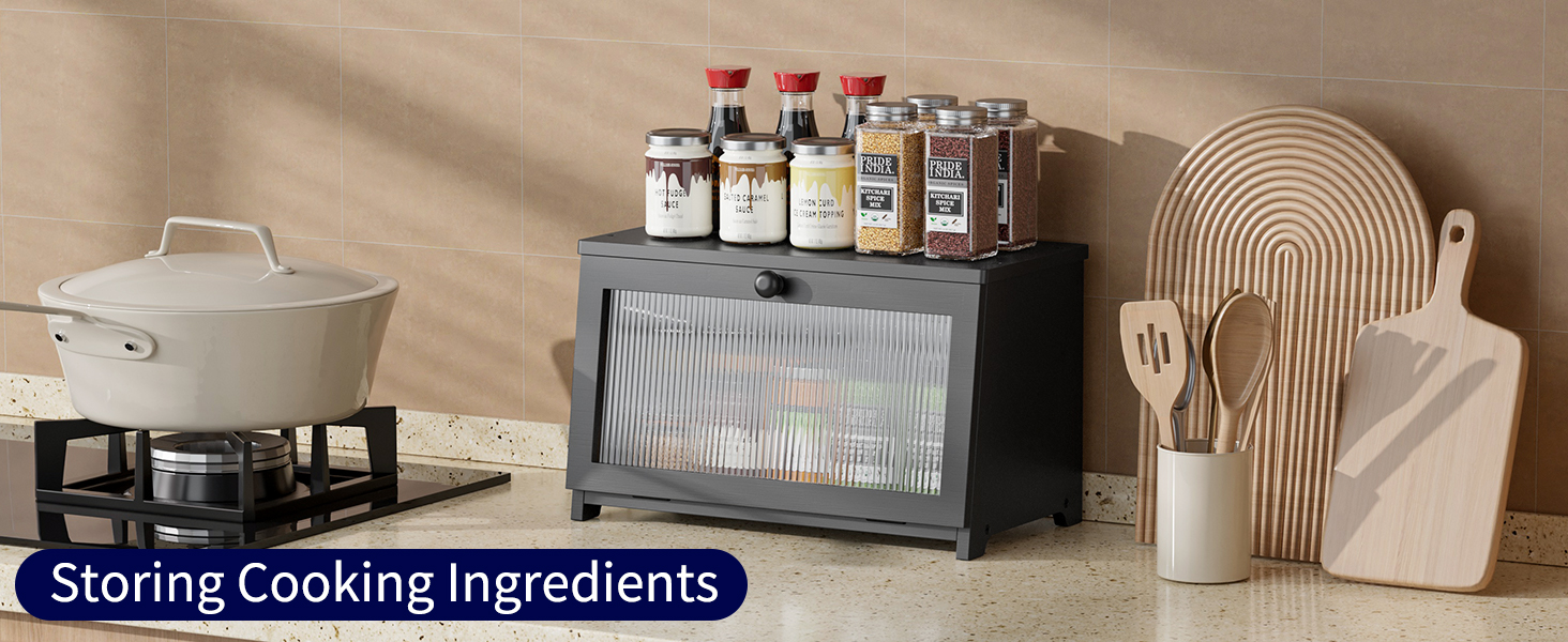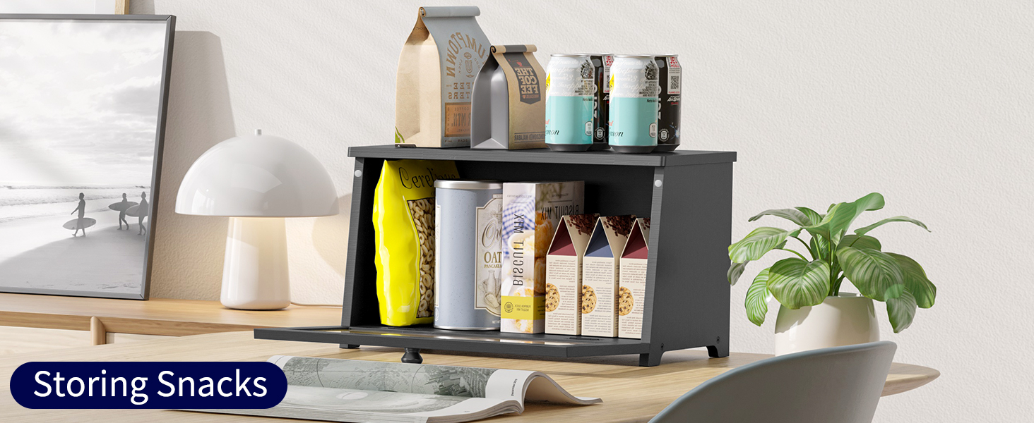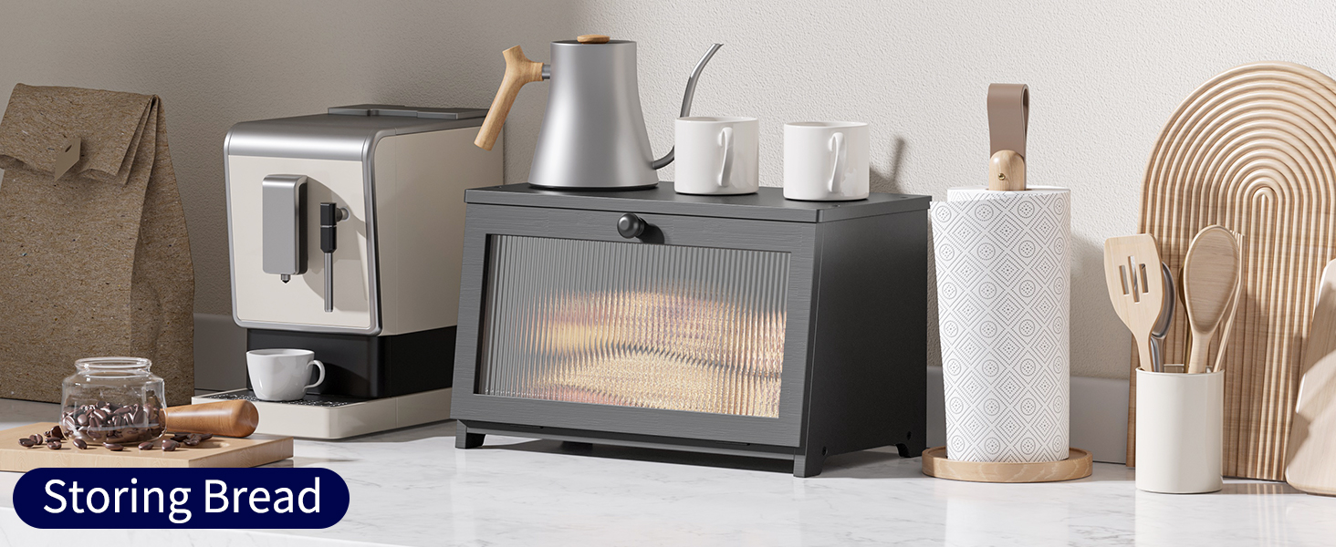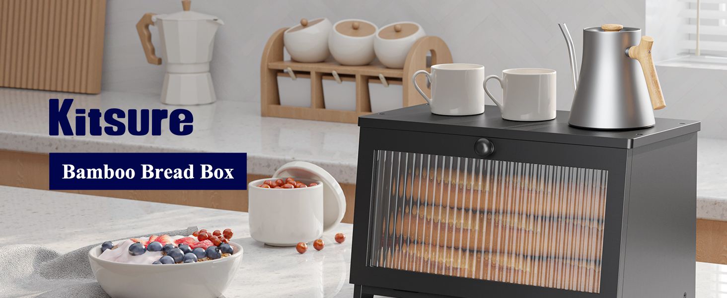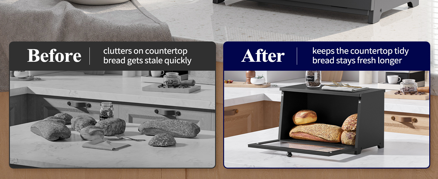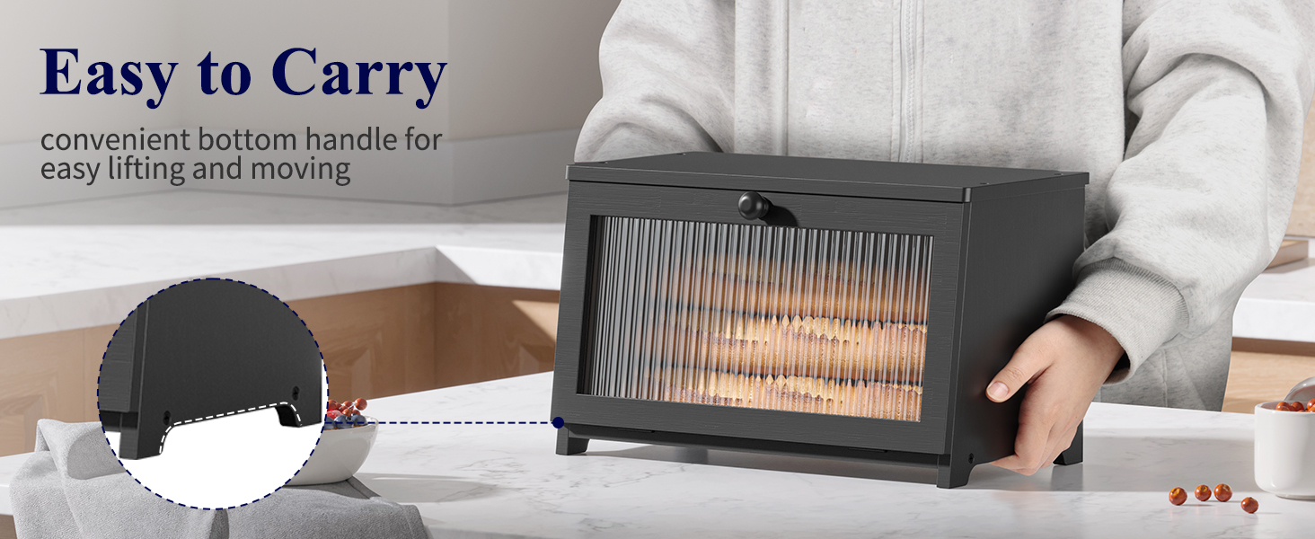- Kitsure Bread Box - Wooden Bread Box for Kitchen Countertop, Large Capacity Kitchen Countertop Organizer, Stylish Bread Storage with Window, Multi-functional Container, Black, 15.0"x8.3"x9.1" (1T)