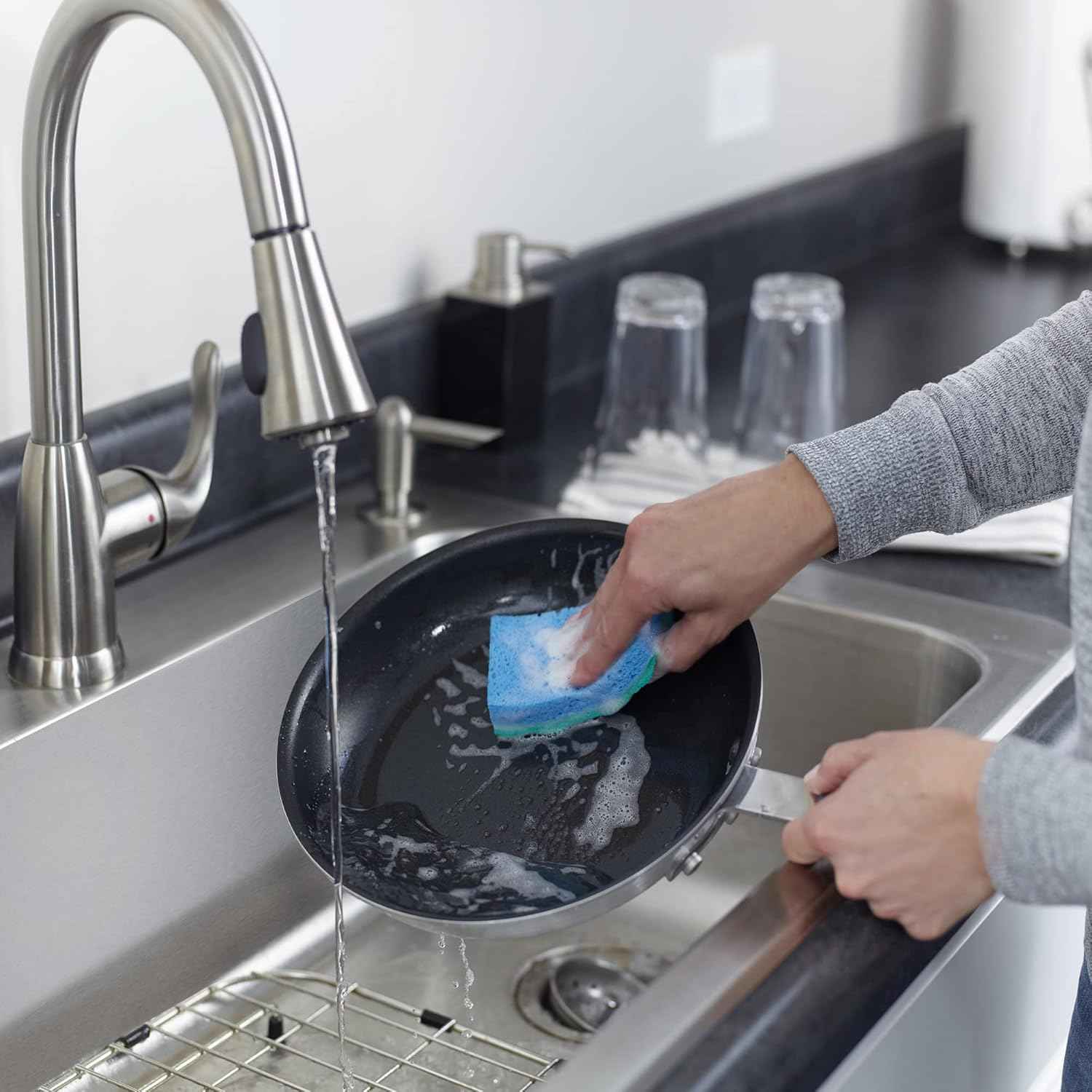 The powerful, yet gentle O-Cedar Scrunge Multi-Use Sponge uses the only patented durable non-scratch scrubbing surface recommended by Teflon quality tested nonstick coatings. Rated the best all-purpose cleaning sponge by Cooks Illustrated after extensive testing in America's Test Kitchen. This dual-sided, odor-resistant sponge has a rippled surface that breaks up and lifts away dirt then rinses clean to prevent stinky and smelly odors. This sponge is safe to use on both cookware and bakeware. After each use, rinse thoroughly and squeeze sponge dry after each use. To further clean sponge, place in the dishwasher. This multi-purpose sponge is designed to be safe on most household, hard surfaces. For delicate surfaces, test first on an inconspicuous area and allow to dry before general use. For best results, replace the sponge every 30-60 days! Built from durable materials, our sponge lasts 20% longer than regular scrubbing sponges. Traditional scrubbers trap and collect dirt which leaves them dirty and smelling gross. The Scrunge is S-shaped to fit perfectly in your hand for comfort and grip!