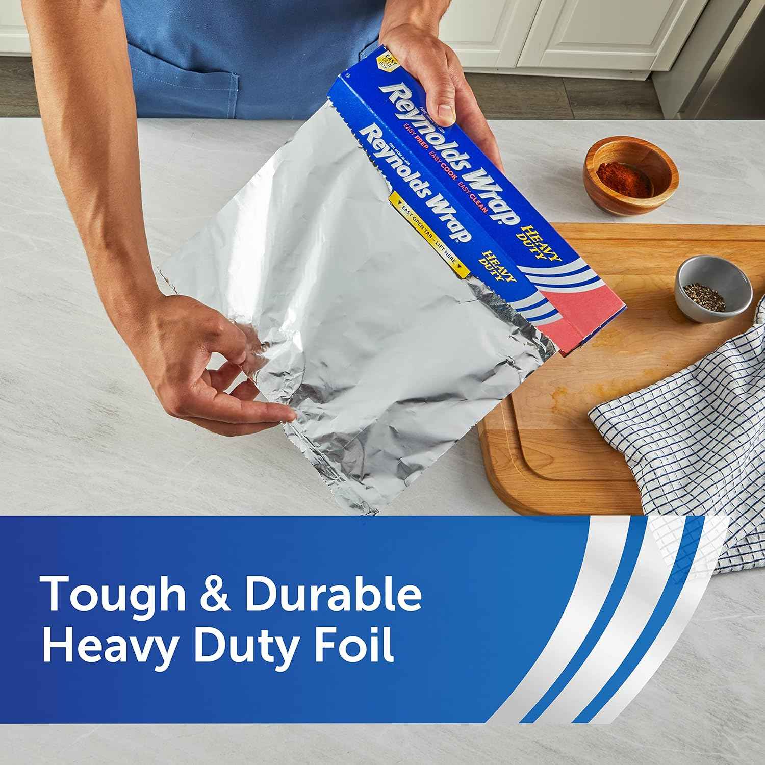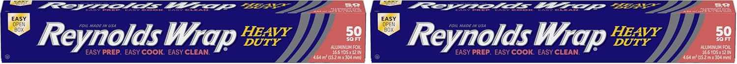 - Reynolds Wrap Heavy Duty Aluminum Foil Roll, Thick Heavy Duty Foil for Added Strength and Durability, Secure Easy Open and Close Tab, 12 Inches Wide, 50 Sq. Ft.
