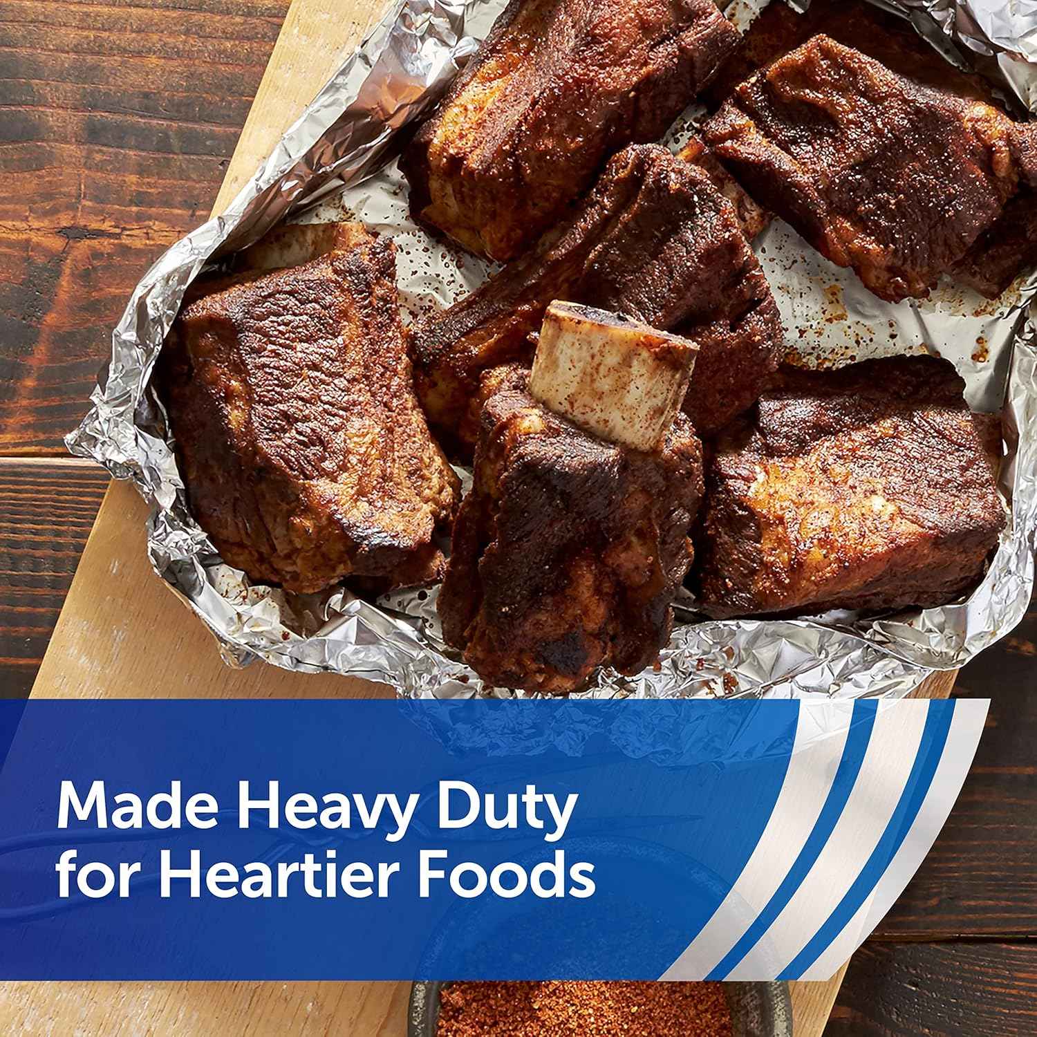 Reynolds Wrap Heavy Duty Aluminum Foil is thick, durable and extra strong for tough jobs. This heavy duty foil is a great choice for high-performance cooking and grilling, whether you're roasting a Thanksgiving turkey, grilling steaks, or preparing a hearty roast. You can count on this heavy duty aluminum foil to get the job done right, whether you're wrapping leftovers for the fridge or freezer, or protecting your food during cooking. This durable aluminum foil is perfect for creating aluminum foil packets that lock in flavor and moisture, delivering mouthwatering results every time. You can also use this foil at your next cookout to prevent food from falling through the grill grates. Plus, this tin foil helps prevent messy splatters by covering pans in the oven or on the stovetop, making cleanup a breeze. The innovative Easy Open and Stay Closed tab on the package ensures your aluminum foil box stays fully closed, making it easy to store inside a kitchen drawer. With over 75 years of trusted quality, Reynolds Wrap Heavy Duty Aluminum Foil is the reliable choice to make your kitchen tasks easier, your meals tastier, and your clean-up quicker.