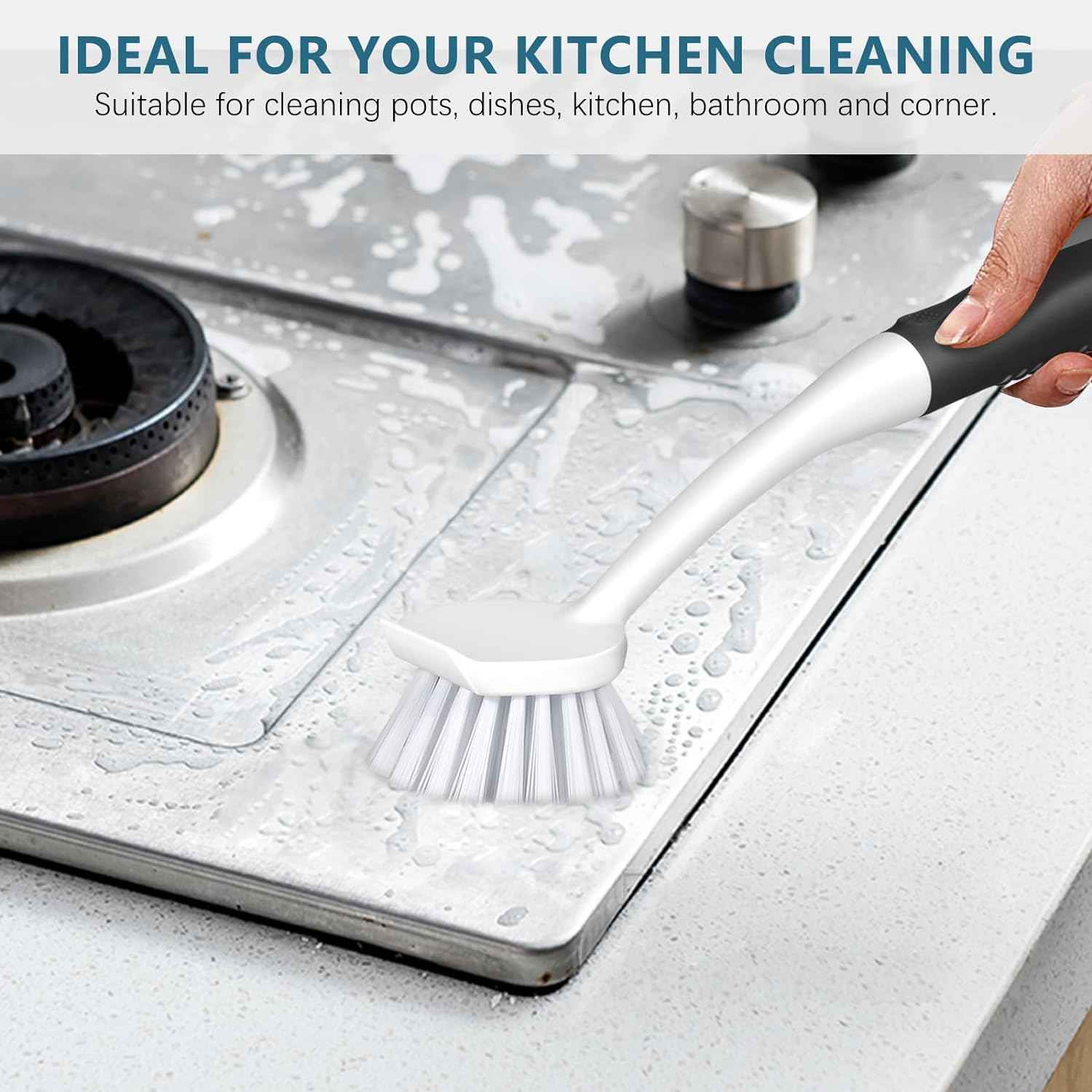 DISH CLEANING BRUSH- This dish brush is equipped with durable and high-quality PET stiff bristles, which will not lose shape after long-term use.