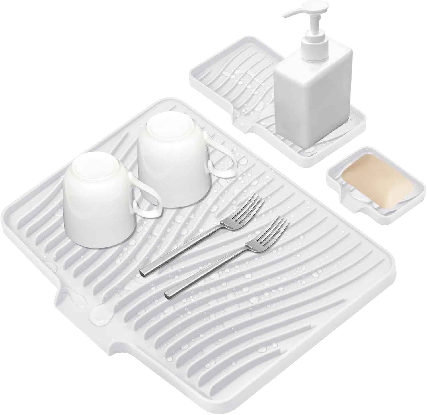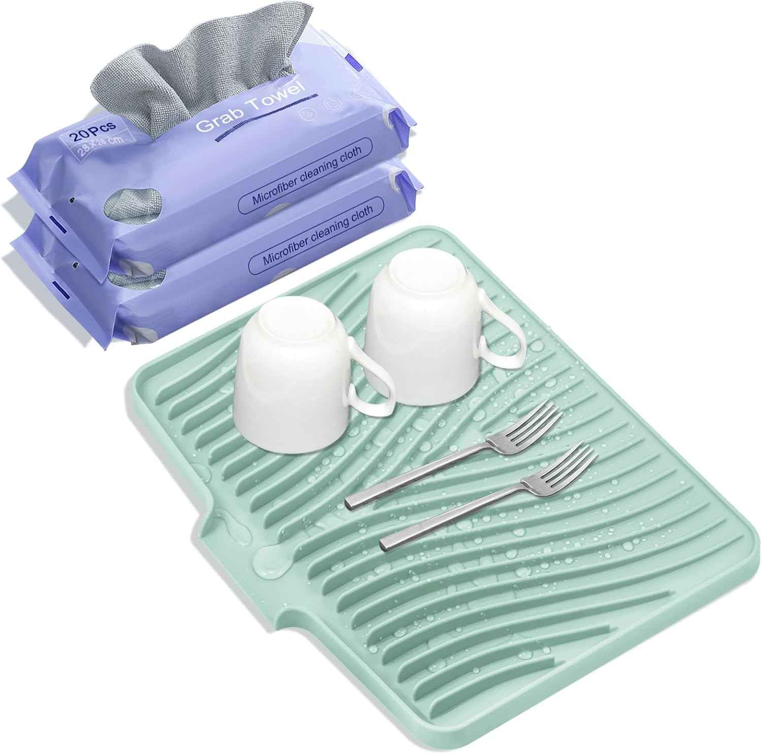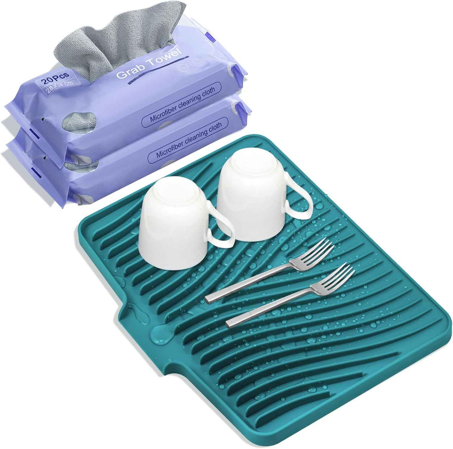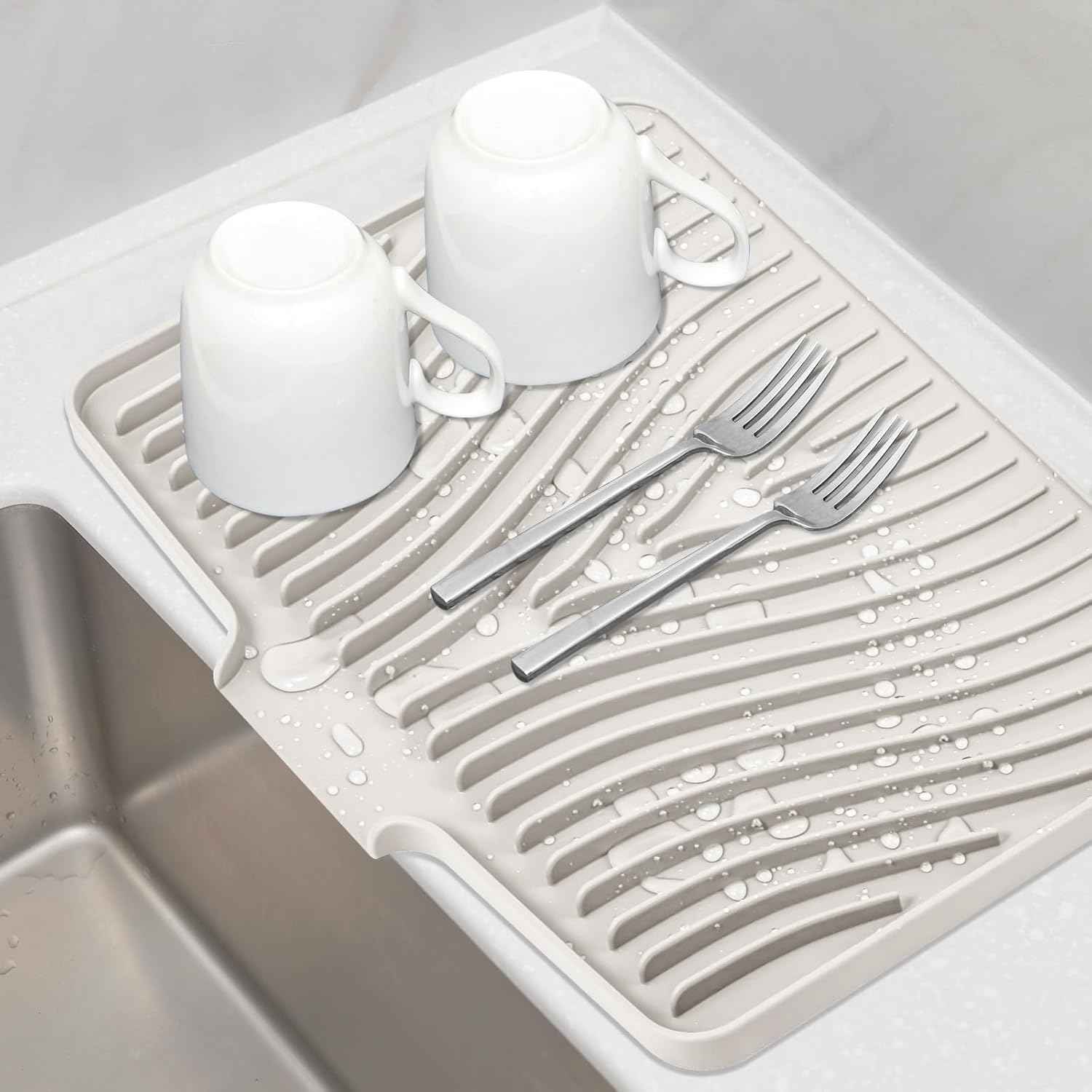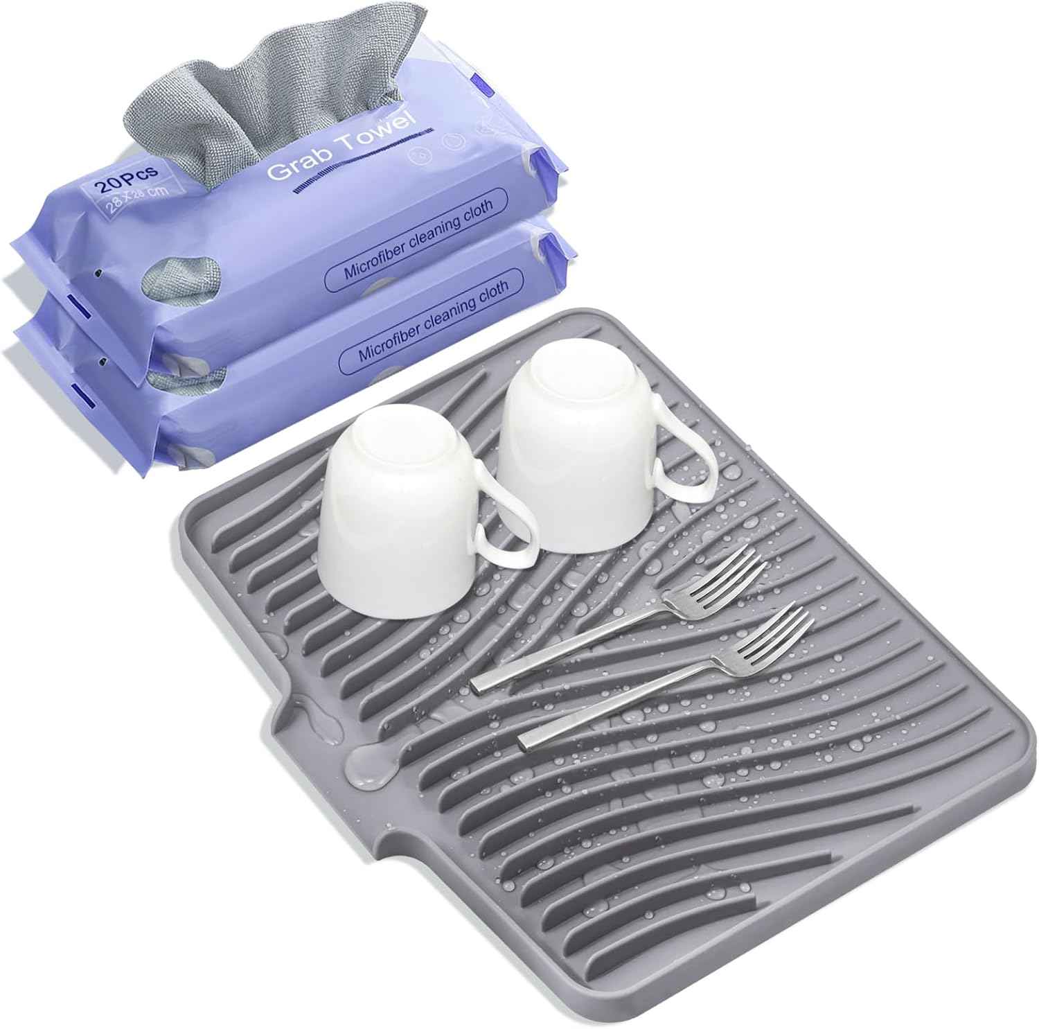 Silicone Dish Drying Mat for Kitchen Counter, Dish Drying Pad, Non-Slip Drain Pad with Built-in Drain, Heat Resistant Stone Drying Mat(15.8" x 13", Grey)