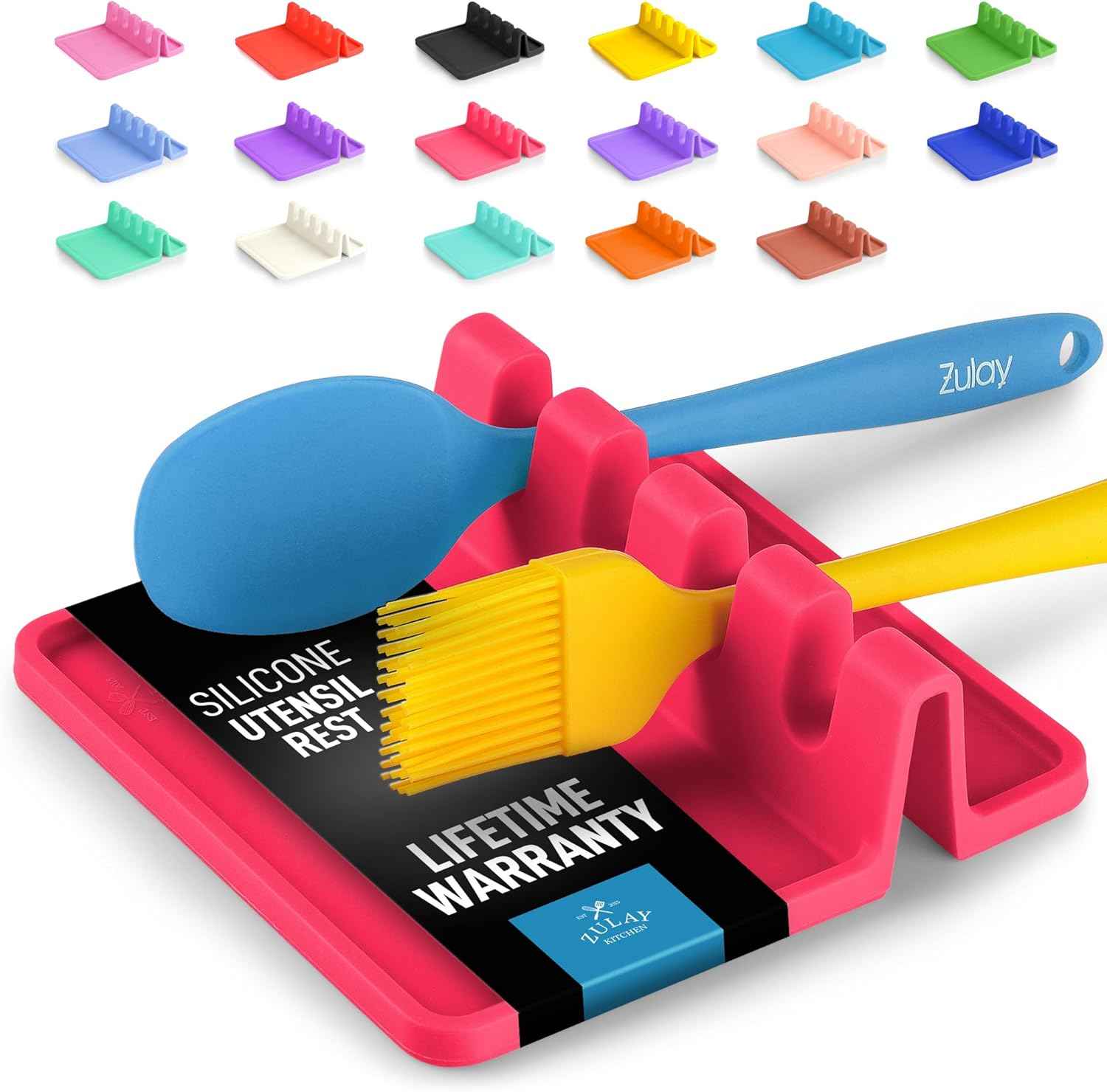 Silicone Utensil Rest with Drip Pad for Multiple Utensils, Heat-Resistant, BPA-Free Spoon Rest & Spoon Holder for Stove Top, Kitchen Utensil Holder for Spoons, Ladles, Tongs & More - by Zulay