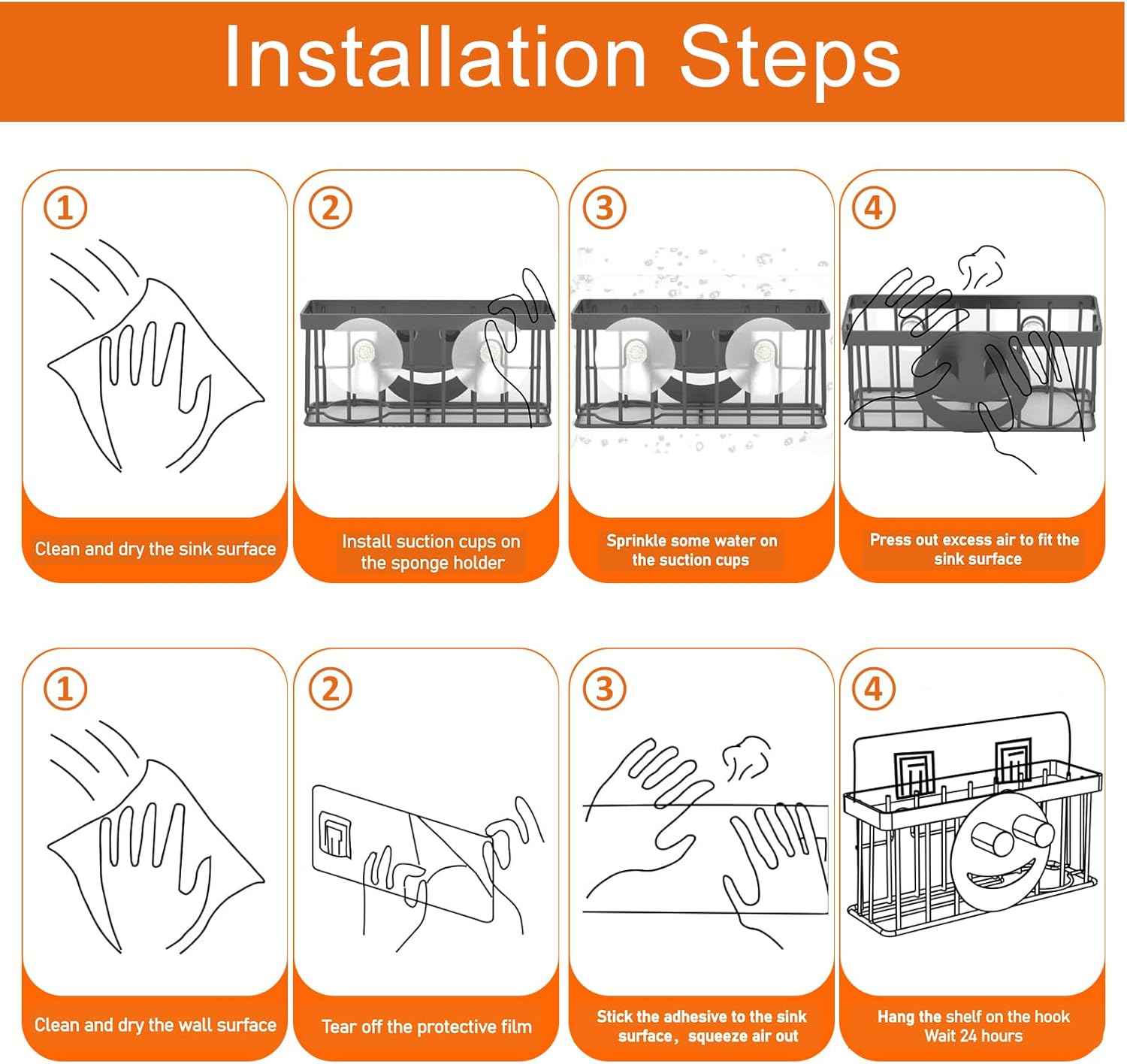 Sponge Holder Smiley Face,Sink Caddy,Sink Organizer with 2 Suction Cups/1 Adhesive Strips,Designed for Sponge,Soap,Dish Brush,Scrubber - Black