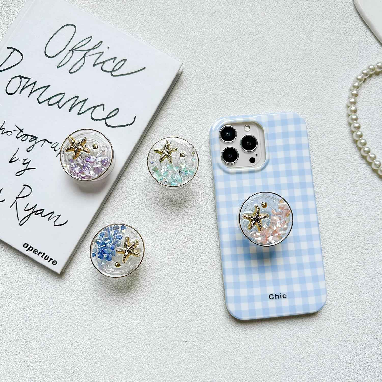 - Elegant Ocean Style Expandable Collapsible Mobile Phone Grip Stand Holder for Smartphone Tablet Cell Phone Accessory (Sky Blue)