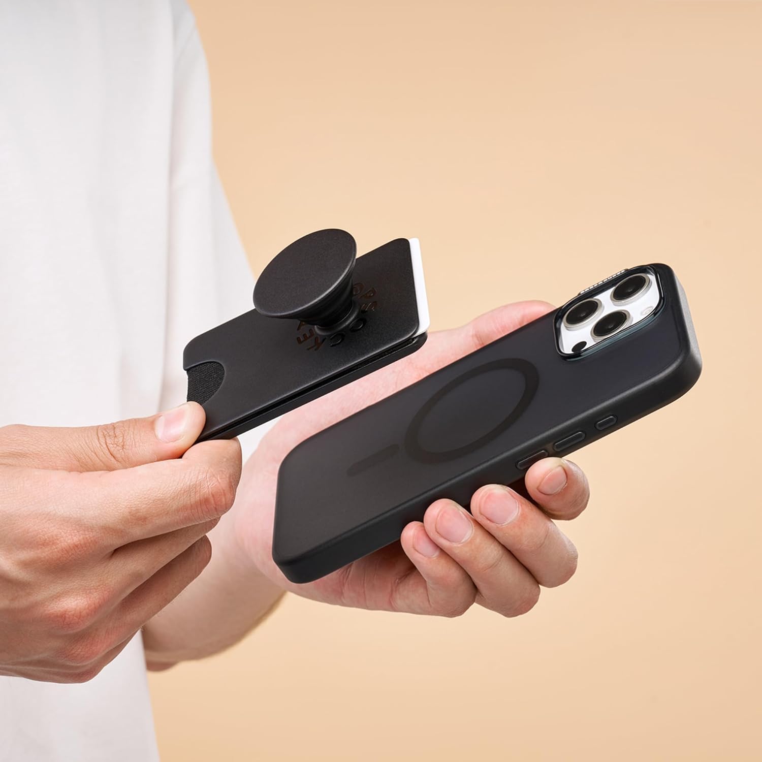 Streamline your day-to-day with our PopSockets wallet with an all-in-one grip that holds your cards while seamlessly attaching to your MagSafe compatible device and case. Includes an adapter ring to give any phone without MagSafe capabilities the ability to use magnetic phone accessories. Attach the adapter ring to your Android/Pixel/iPhone (or any non-MagSafe case) to enable magnetic grip technology. The Pop Wallet can securely hold up to three credit cards. The grip allows you to use your phone one-handed, kickstand on-the- go, or attach to a mount for hands-free use. When you are ready to charge your phone simply slide off the wallet and attach to your wireless charging pad or iPhone compatible wireless charging station.