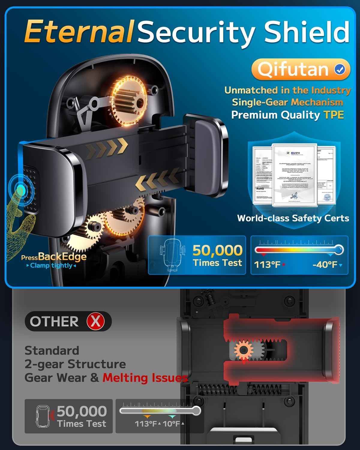 Qifutan Car Phone Holder Mount Phone Mount for Car Windshield Dashboard Air Vent Universal Hands Free Automobile Cell Phone Holder Fit for iPhone Smartphone Camera Mounts