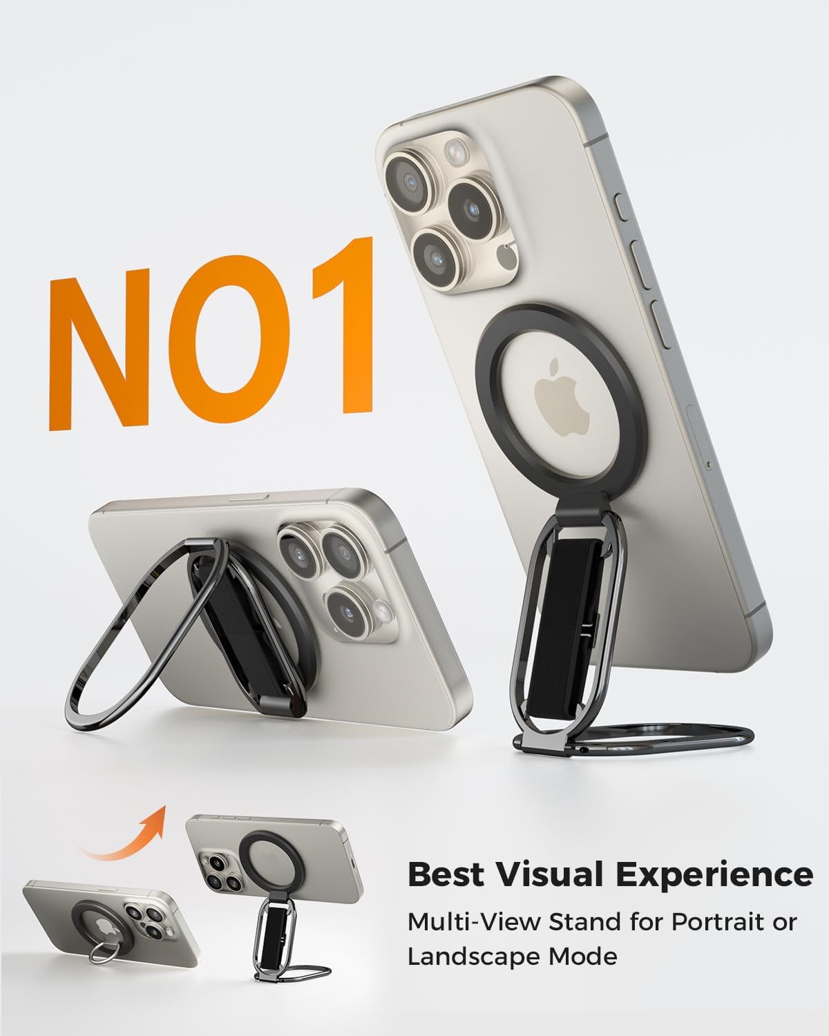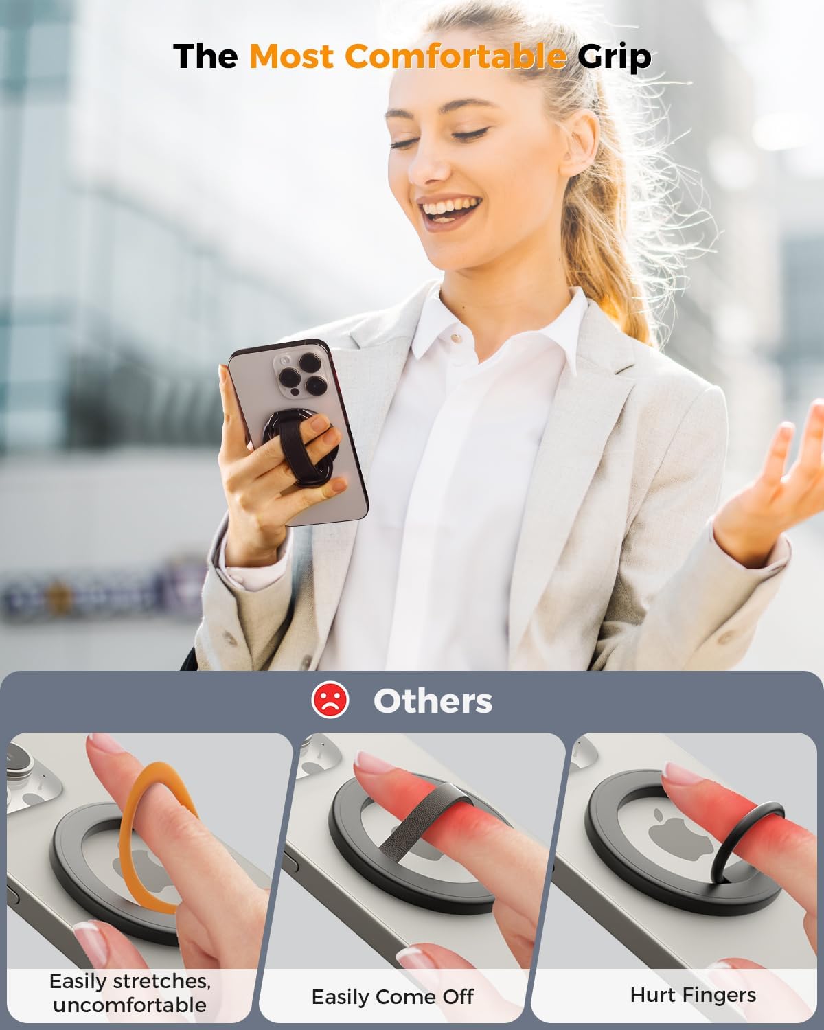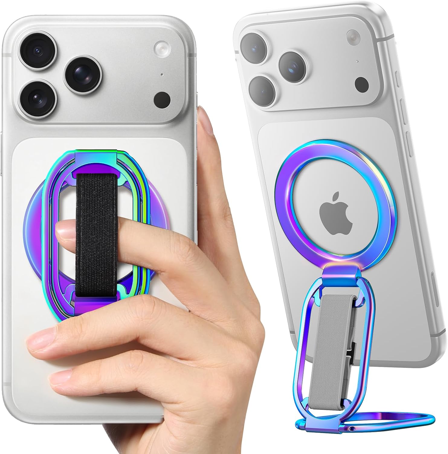 SUPERONE for MagSafe Phone Grip for MagSafe Kickstand Compatible with Mag Safe Finger Loop, 4-in-1 Phone Ring Holder Strap for Mag Safe iPhone 17/16/15/14/13/12 Series, Black [2025 Version]