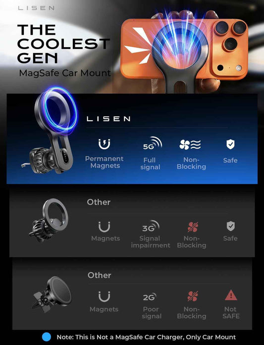 LISEN for MagSafe Car Mount, 2026 Magnetic Phone Holders for Car Air Vent Phone Mount [Ultra-Magnetic] Hands Free Cell Phone Holder Strong Clip Car Accessories for Men Women fit iPhone 17 16 15 14 Pro