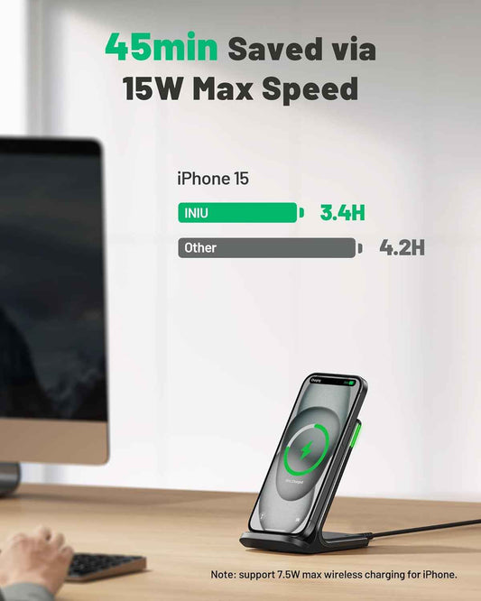 INIU Wireless Charger, 15W Fast Qi Certified Wireless Charging Station with Sleep-Friendly Adaptive Light Compatible with iPhone 17 16 15 14 13 12 Pro Max Samsung Galaxy S25 S24 S23 Note 20 Google etc