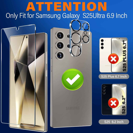 3 Pack Glass Screen Protector for Samsung Galaxy S25 Ultra [6.9 inch] + 3 Pack Camera Lens Protector, 9H Tempered Glass, Fingerprint Unlock, HD Clear Case Friendly Anti-Scratch