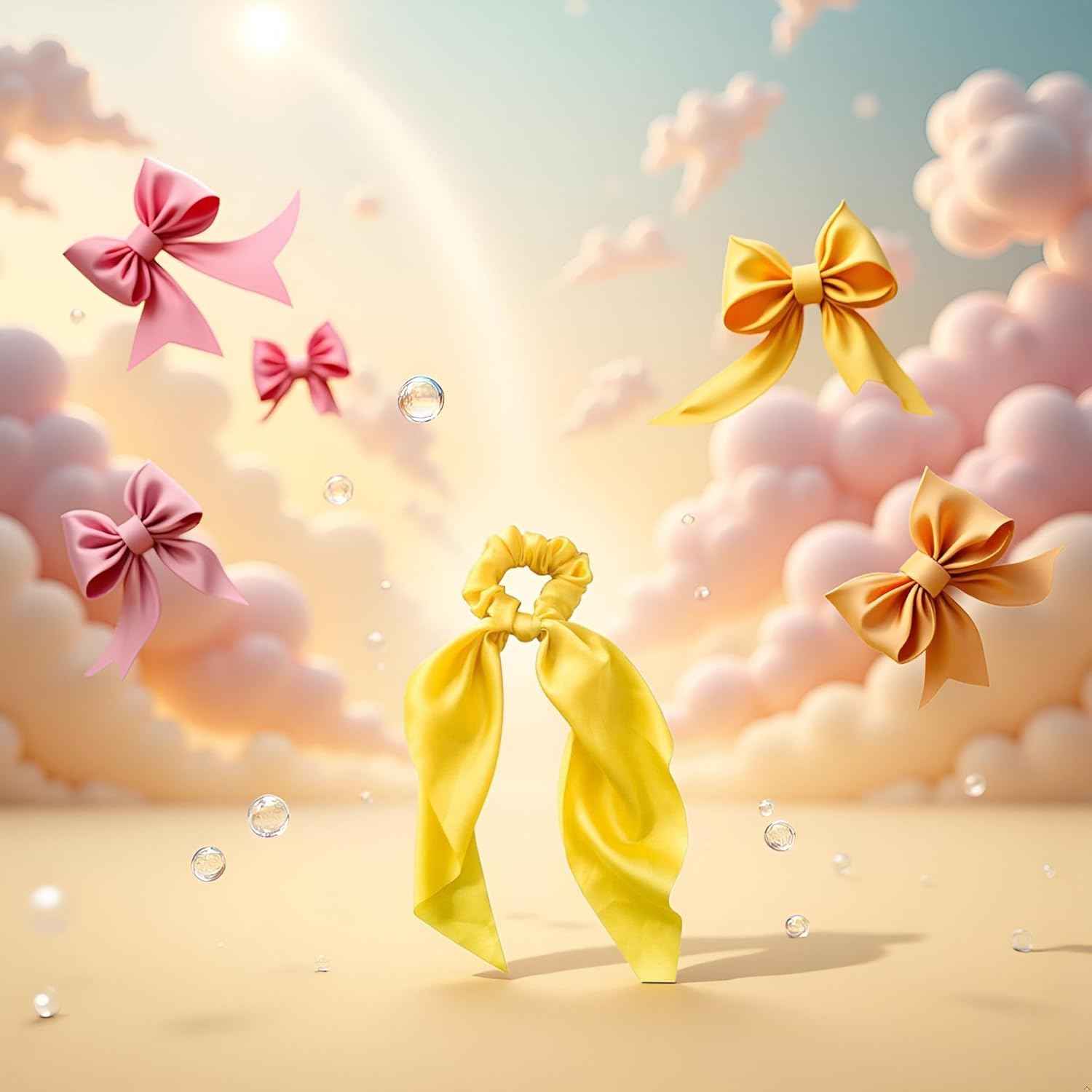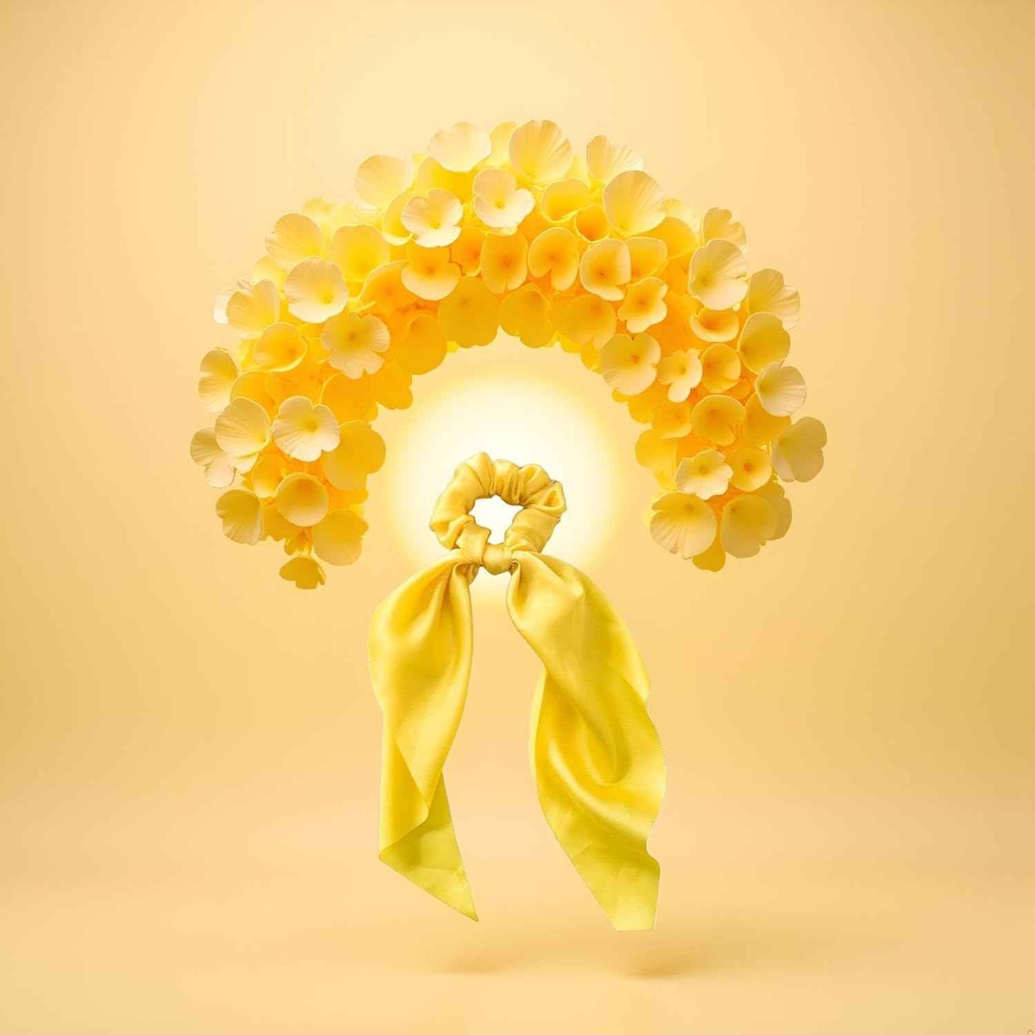- 2Pcs Yellow Women Girl Bow Satin Ribbon Ponytail Scarf Hair Tie Rope Scrunchies Elastic Band Hair Scrunchies Bands Elastics and Ties Beauty and Personal Care Hair Care, Hair Accessories