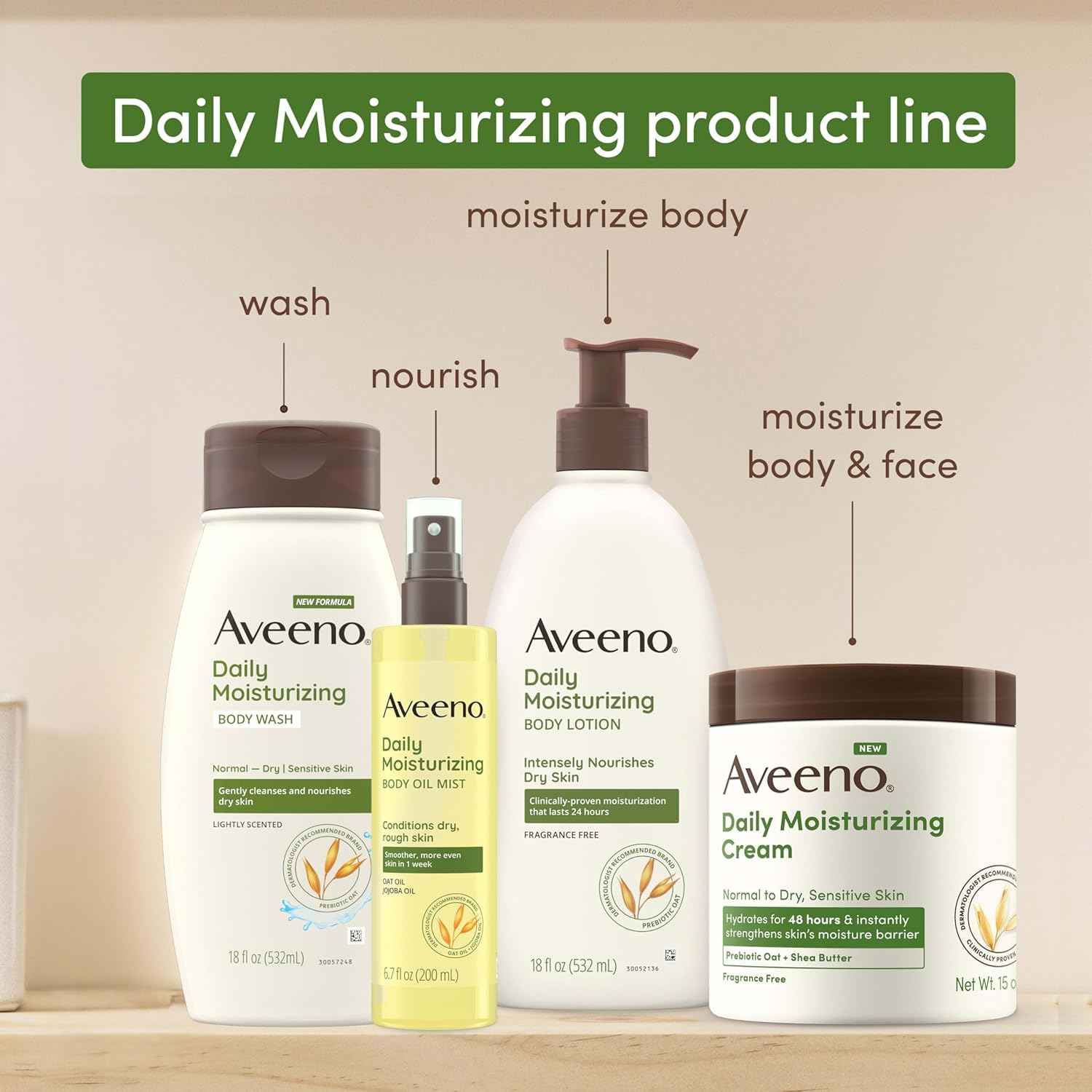 Aveeno Daily Moisturizing Body Wash with soothing prebiotic oat and a light scent nourishes dry skin. This creamy body wash gently cleanses and helps skin feel moisturized. 93% of users agreed that the cleanser left their skin feeling moisturized. The formula is allergy tested & contains nourishing oat. The body wash gently cleanses dry, sensitive skin to help skin feel moisturized and smooth. From the Dermatologist-recommended brand for over 70 years, this body cleanser for sensitive skin from Aveeno is lightly scented to be gentle on skin, and formulated to be free of parabens, dyes and soaps. To use, squeeze body wash onto a wet washcloth or hands, work into a rich, creamy lather, and rinse. Creamy body wash can also be used as a rich shave gel for silky, smooth legs. Follow with Aveeno Daily Moisturizing Body Lotion to lock in moisture for 24 hours.