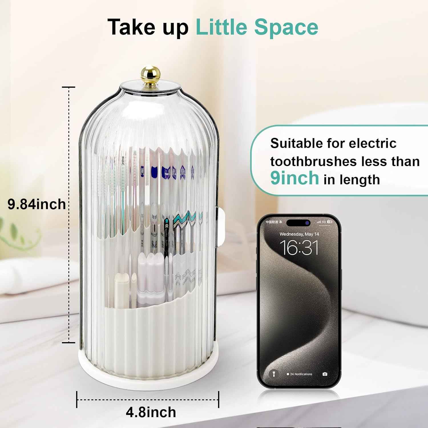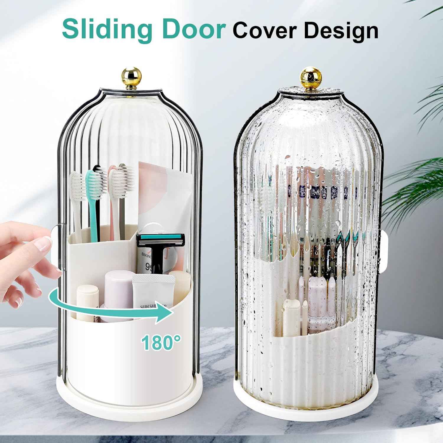 - Toothbrush Holders with Sliding Lid, Rotating 3 Slots Bathroom Organizer Countertop, Tooth Brush Toothpaste Holder Bathroom Counter Stand Sink Organizer Caddy for Vanity Makeup Brushes Holder