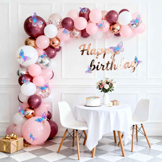 65Pcs Birthday Decorations Happy Birthday Banner Pink Rose Gold Balloons Honeycomb Ball Paper Fans Dots Garland Hanging Swirls Birthday Party Decor for Girls Women Princess