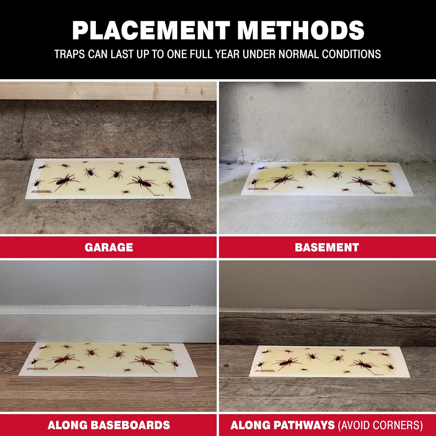 Safely secure adhesive glue traps near garage doors and other entrances to prevent spiders & other pests from entering your home through the garage.