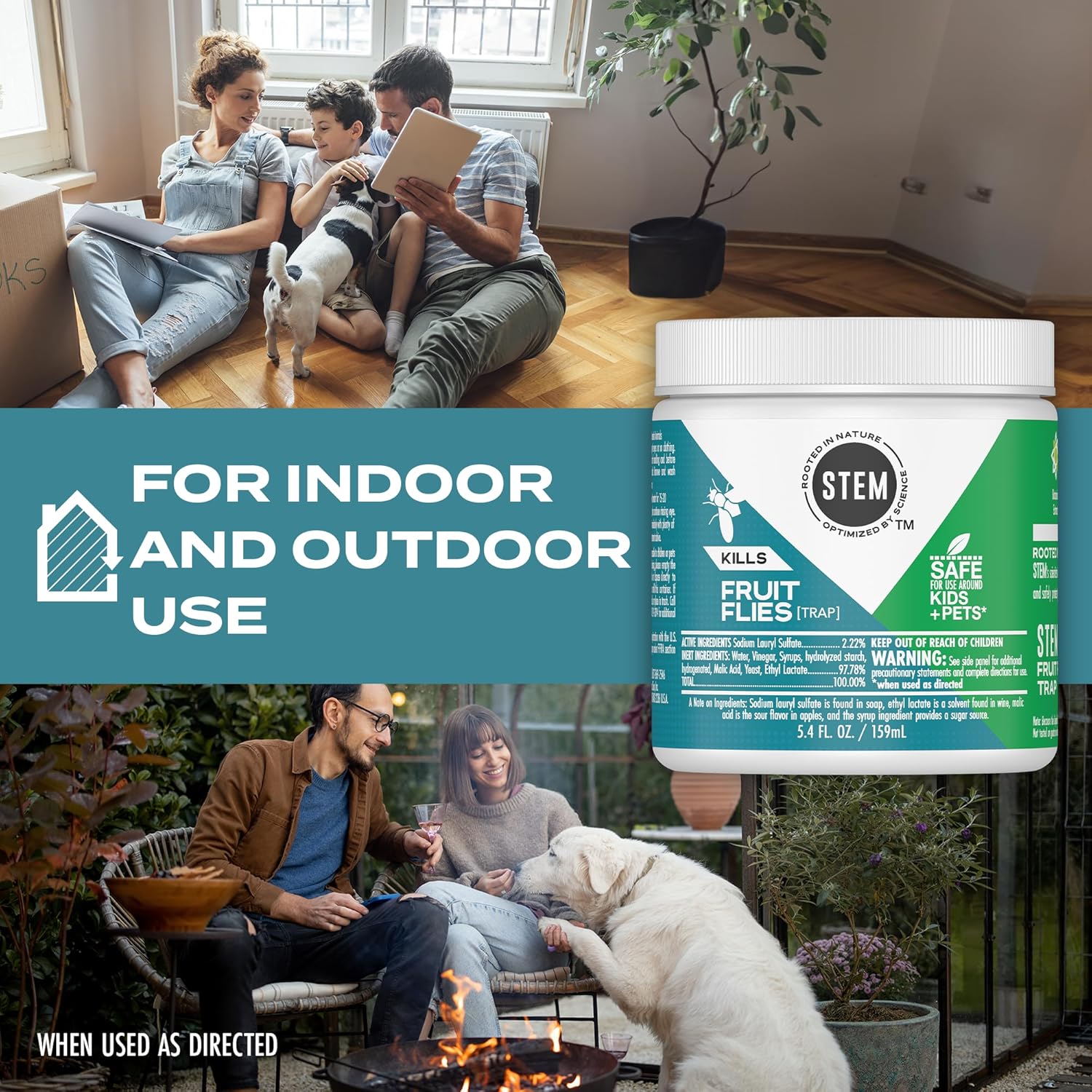The best defense against Mother Nature is Mother Nature. Meet STEM Kills Fruit Fly Trap � a fruit fly killer for home use made with botanical extracts that are safe for you, but deadly for bugs. STEM�s scientists decode the power of nature, scientifically optimizing it into effective bug-fighting forms. STEM indoor fly trap attracts fruit flies and kills them. This fly insecticide was tested by entomologists and is safe for use around people and pets (when used as directed). It has no added dye, fragrance, or harsh chemical odors. Starts working immediately and lasts up to 21 days. STEM helps protect your family. Rooted in Nature, Optimized by Science.