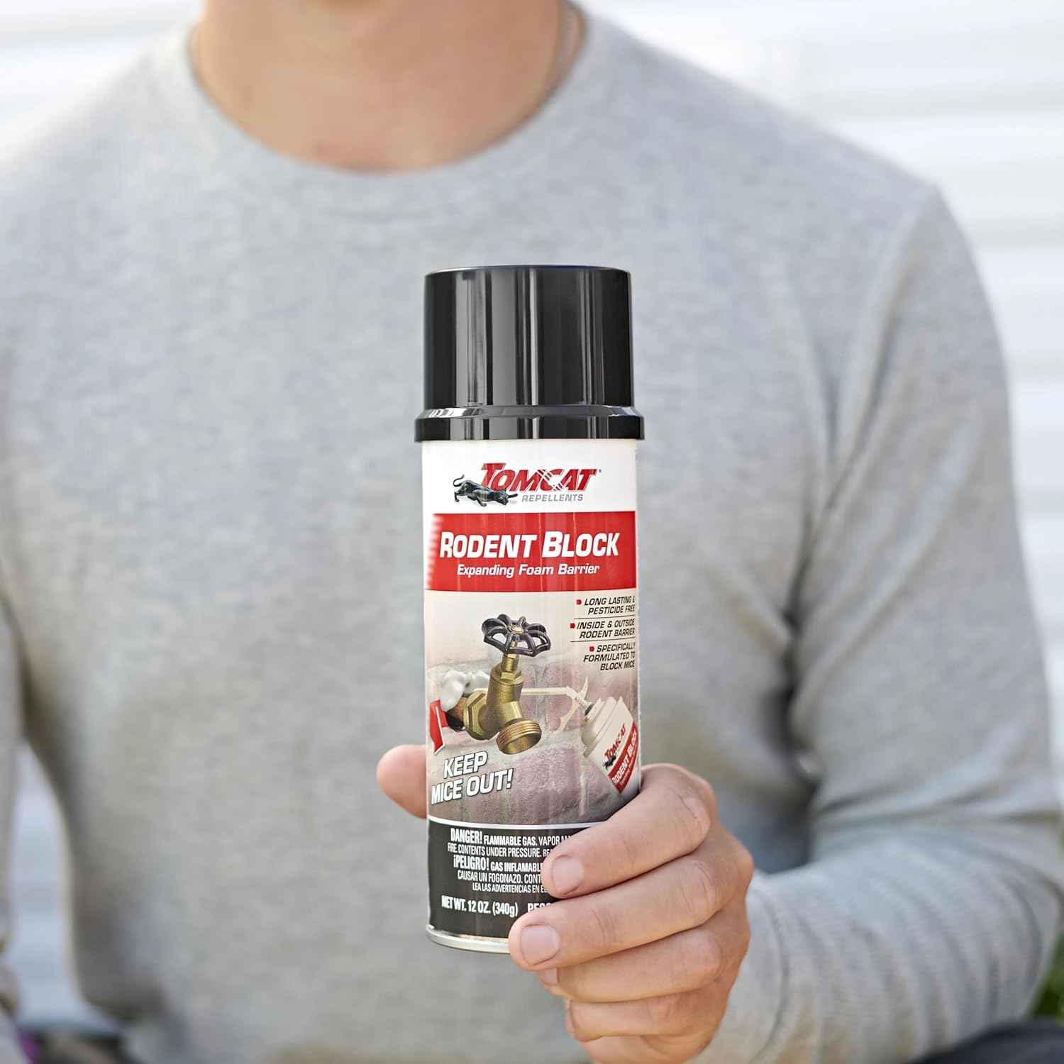 - Tomcat Rodent Block Expanding Foam Barrier, Fills Gaps to Keep Mice From Entering the Home, 12 oz.