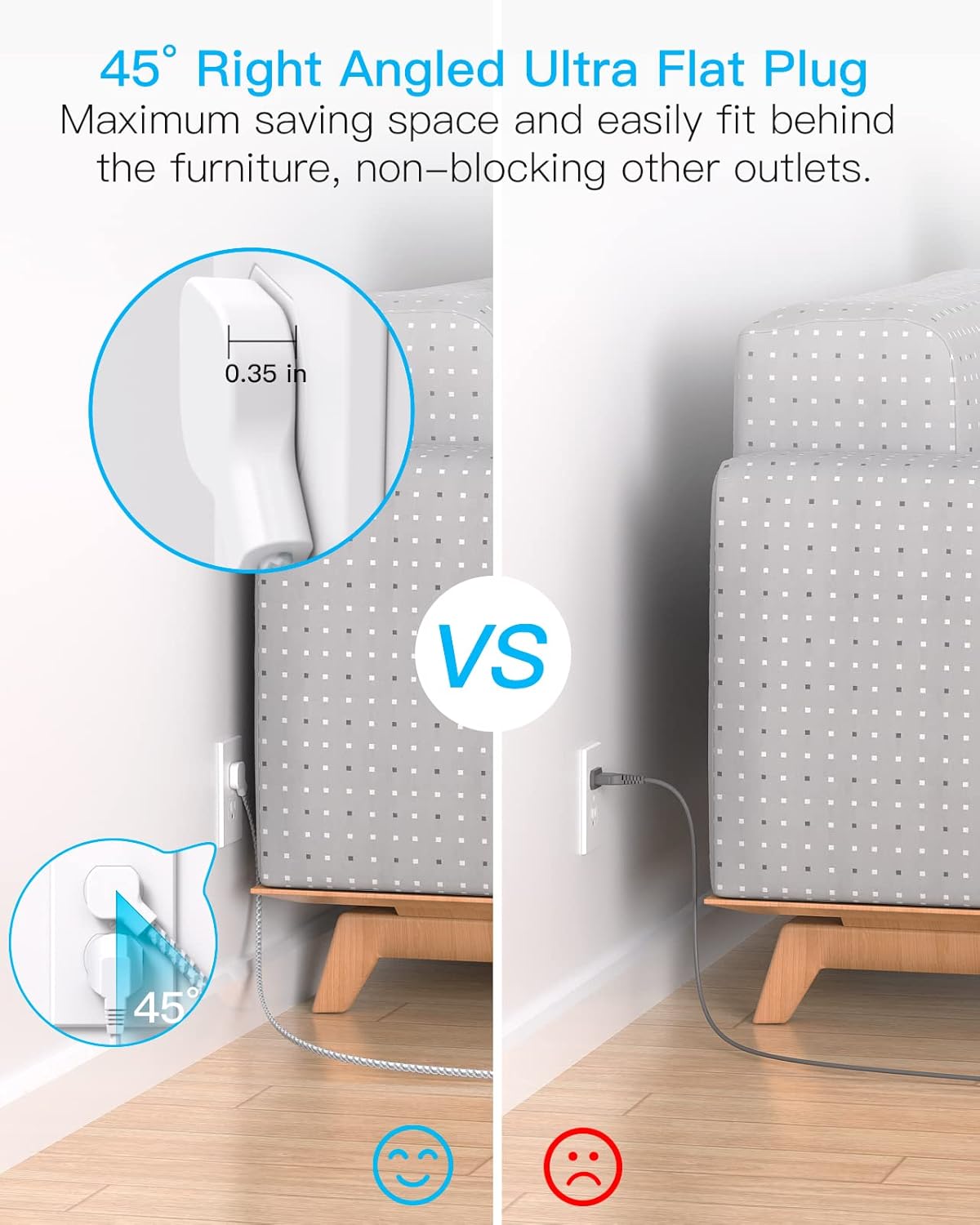 Crafted with high-quality fire-resistant materials and precision-engineered ultra-flat cord, this power strip ensures both durability and flexibility. The compact, low-profile flat plug prevents obstruction and fits snugly behind desks or sofas. Each USB port is equipped with smart IC charging technology that automatically distributes optimal current for each device, ensuring fast and efficient charging every time.