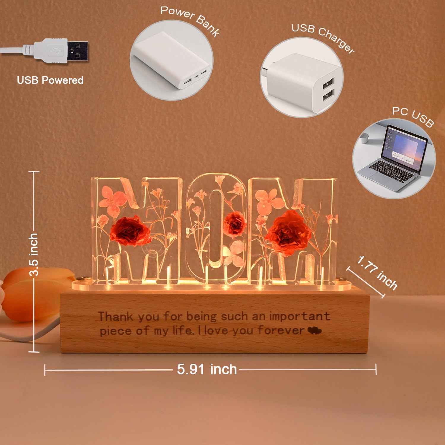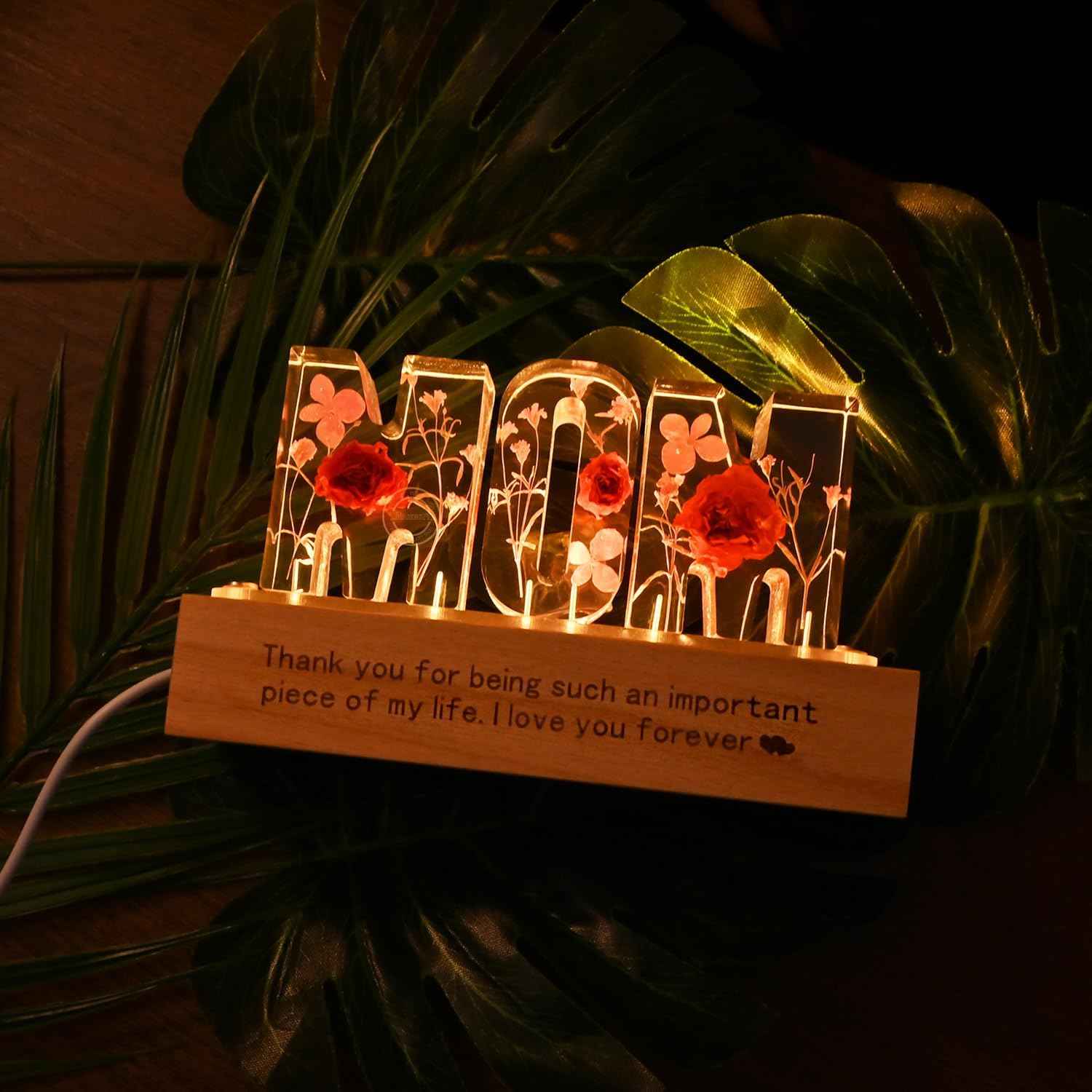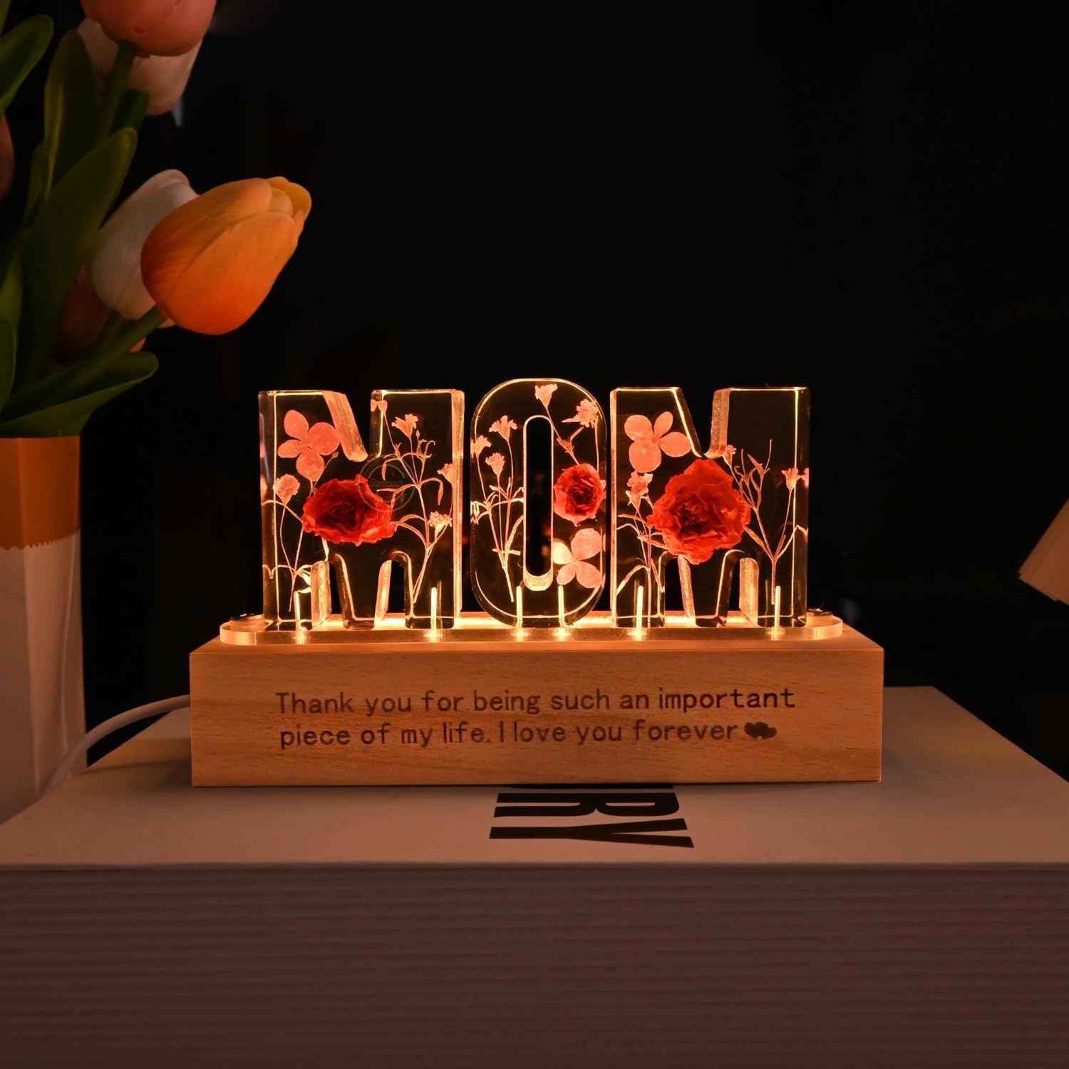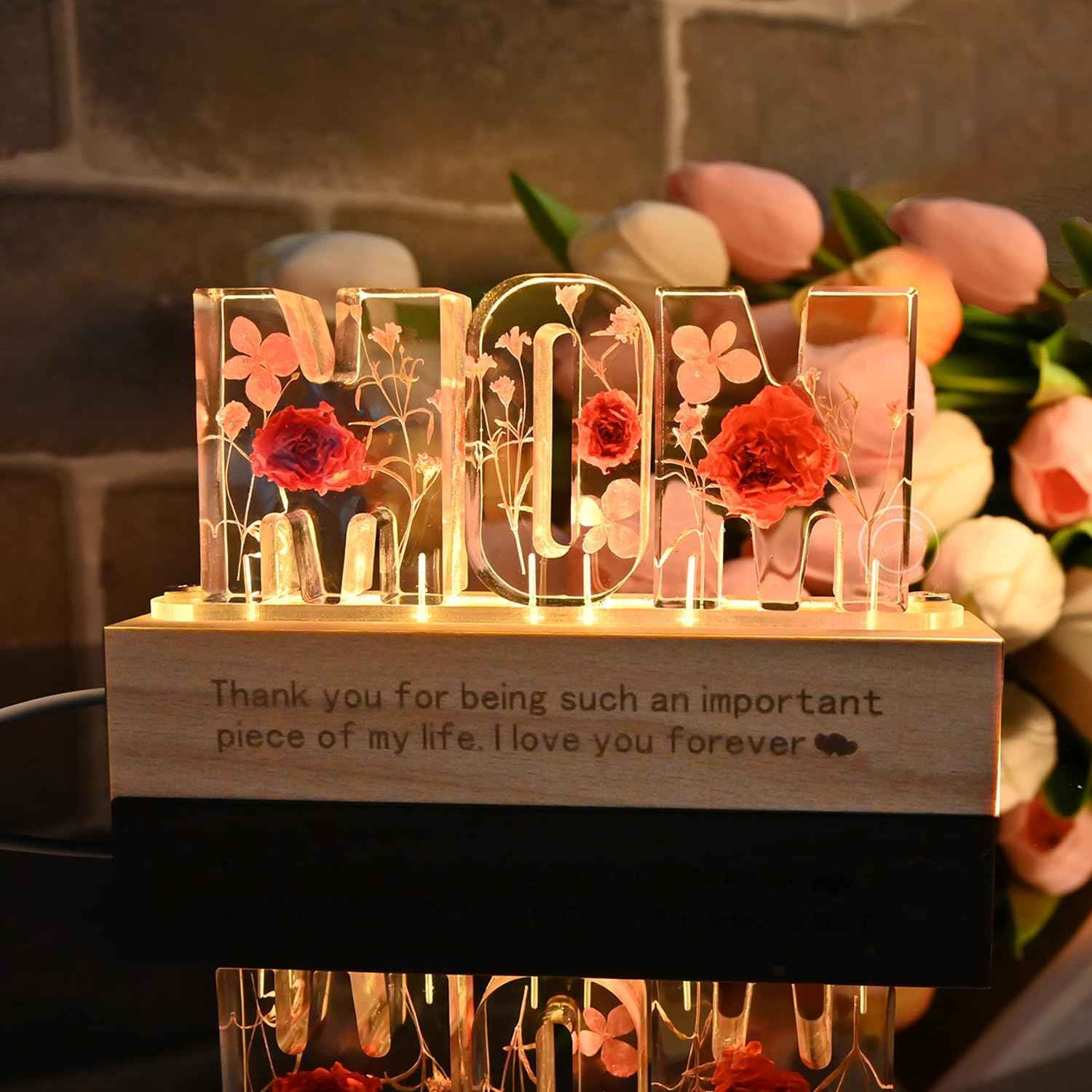 The Mom shaped dry flower night light embodies eternal love. Its soft glow creates a warm atmosphere, showing mom how much she means to you. It is an ideal gift for her birthday or Mother's Day, as it holds the essence of your love.