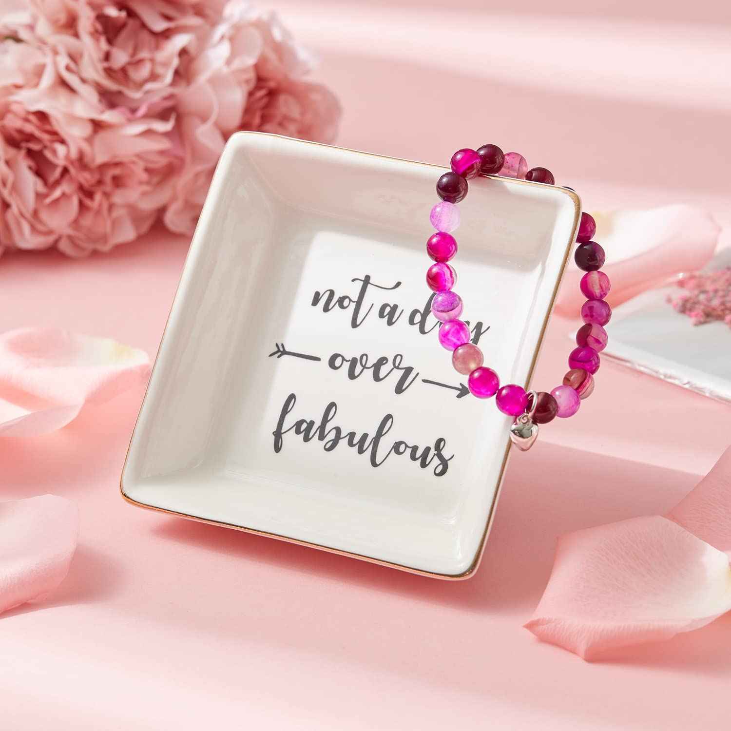 Radiant Agate Bracelet Enhances Positive Energy, Paired with Stylish Ring Dish for Effortless Organization & Display.