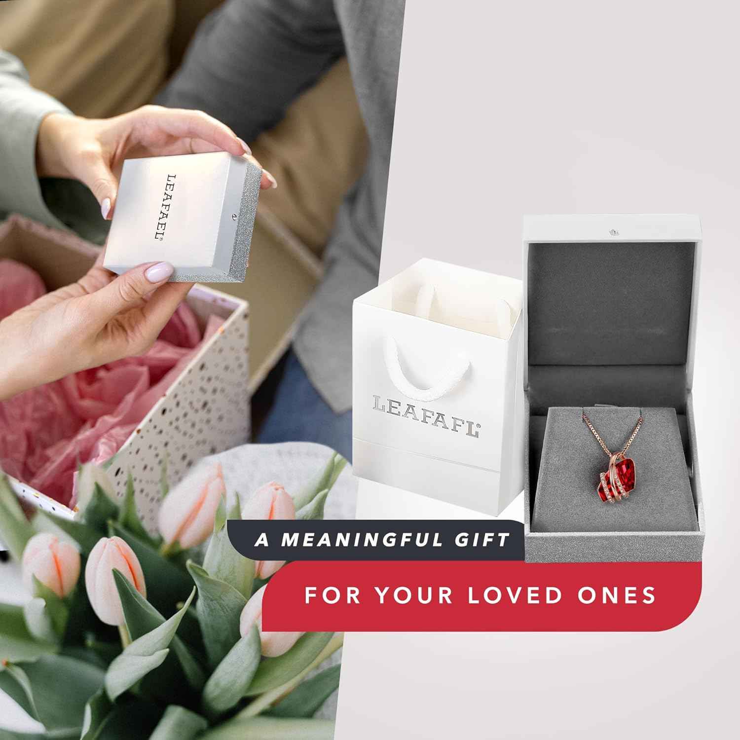 Each Leafael Jewelry piece is packed with exclusively elegant white, silver-embossed jewelry gift box protection.