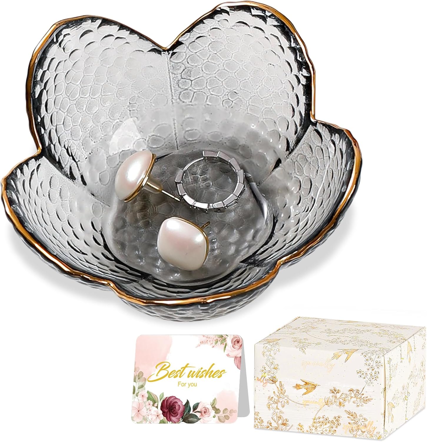 Glass Flower Shape Trinket Dish Gifts for Women Her