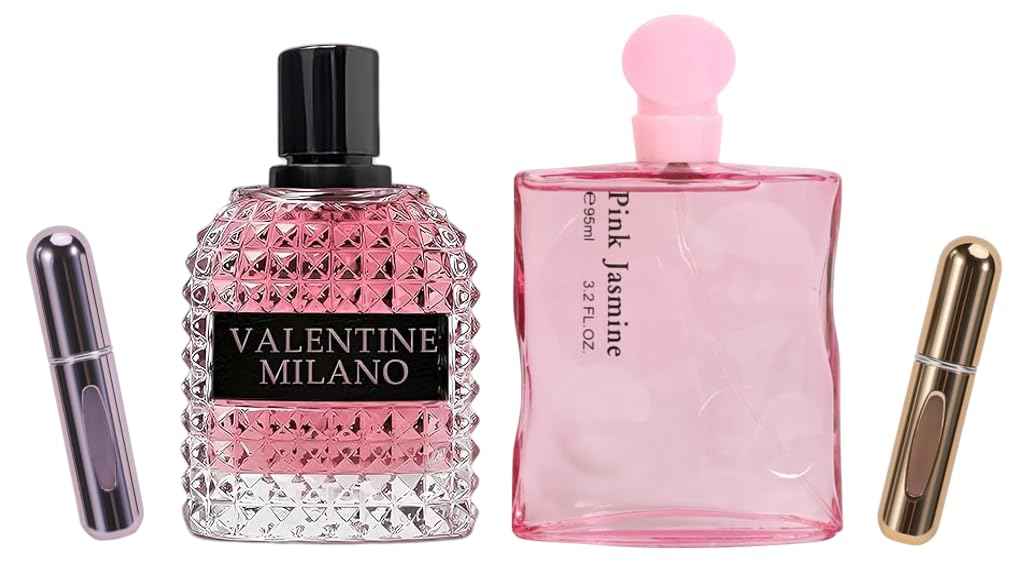 Valentine Milano Couple Set Perfume Gift Set for Women/Men EDP – (100ml x2) Amber Floral & Oriental Scents, Cologne with a Modern Twist Elegant, Plus 2 Refillable 5ml Travel Spray Bottles.