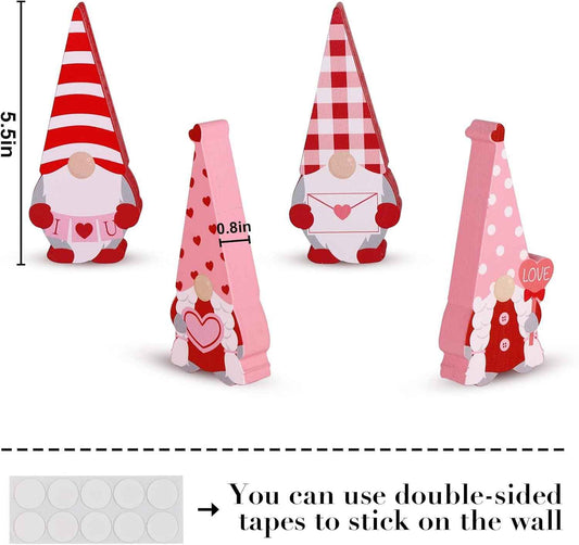 Valentines Day Decor Gnome Table Decorations Sign, 4 Pcs Galentines Day Red and Pink Wooden Tiered Tray Decor, Classic Valentines Day Decorations for The Home Table Decor Valentines Day Gifts